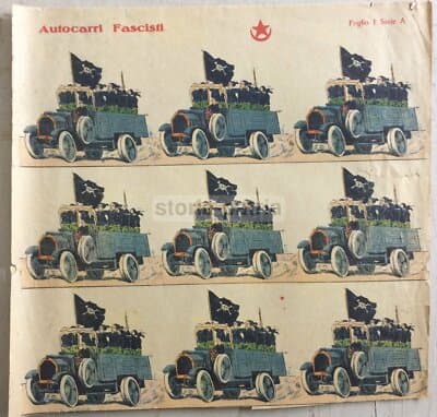 Militaria: Fascismo, Soldatini Da Ritagliare, Marca Stella, Raro Foglio Con 6 Autocarri