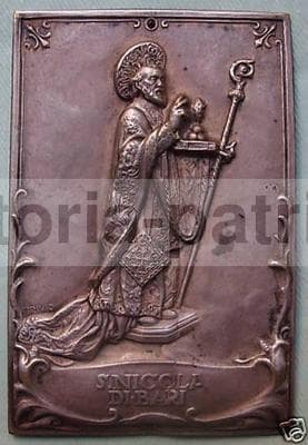 San Nicola Di Bari: Placchetta Devozionale In Metallo Argentato, Iconografia Inusuale, Anni '20