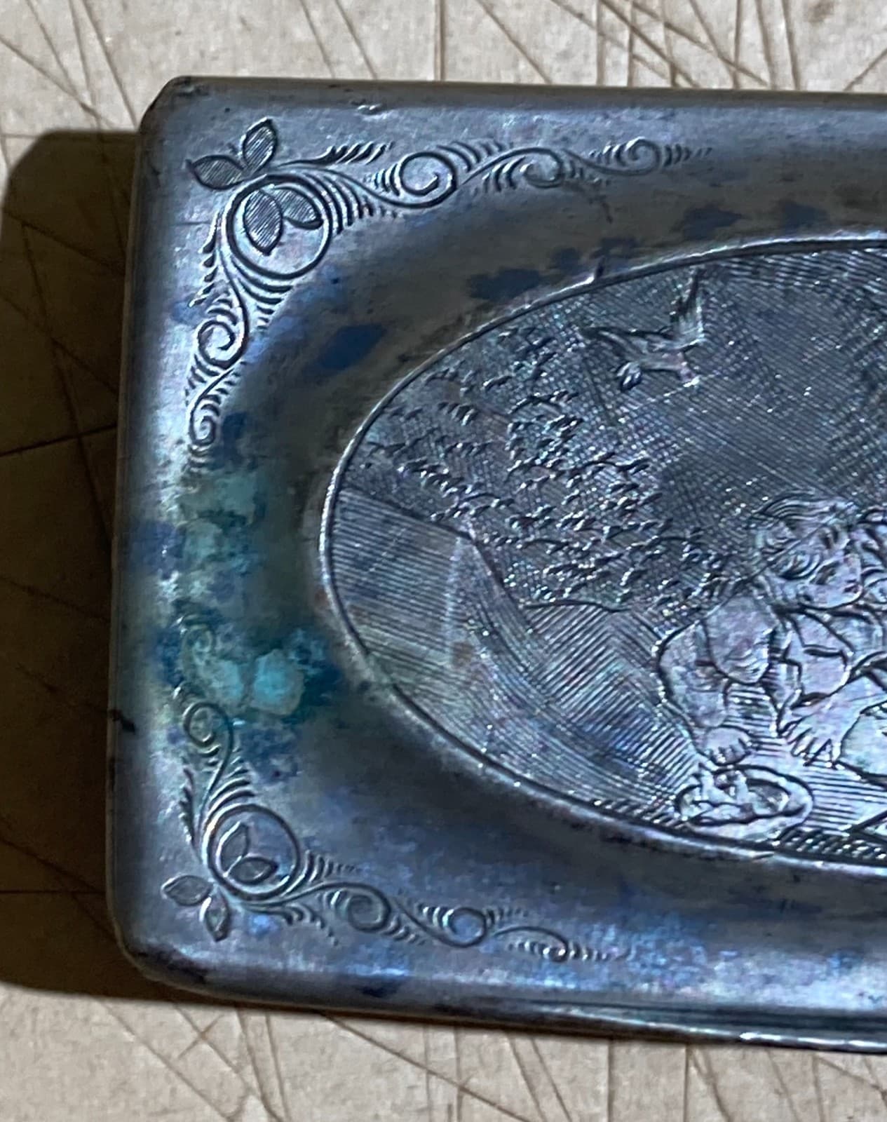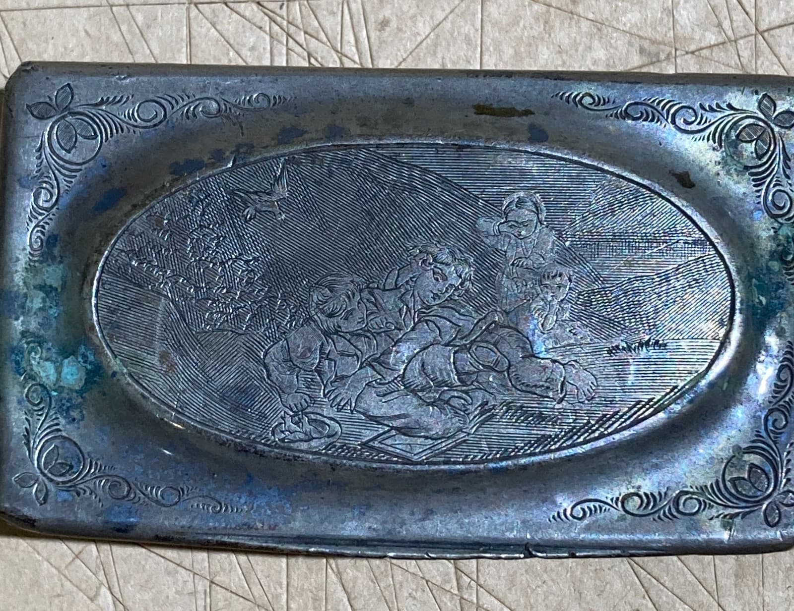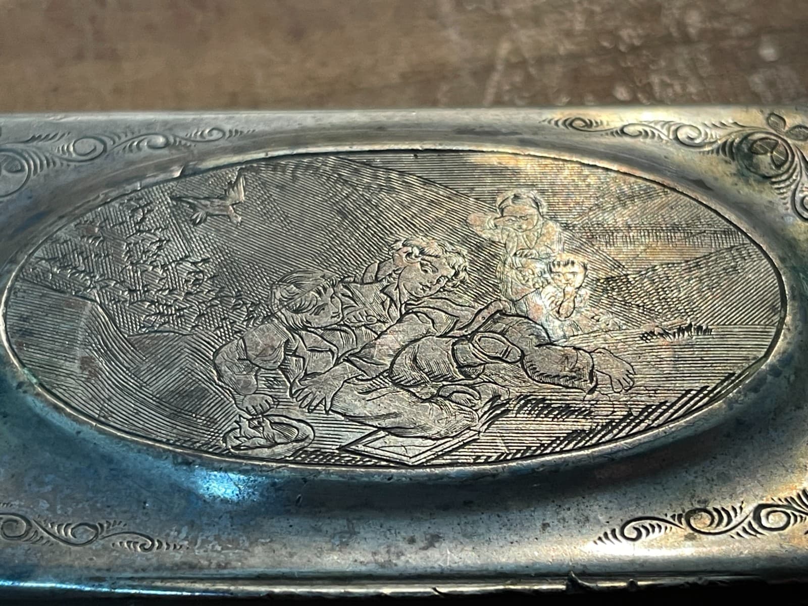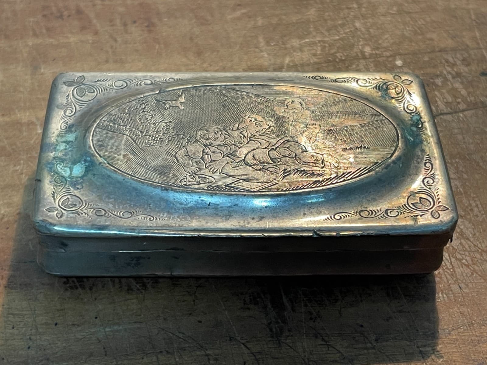 Antica Tabacchiera Con Scena Artistica Incisa E Punzonata, Napoli