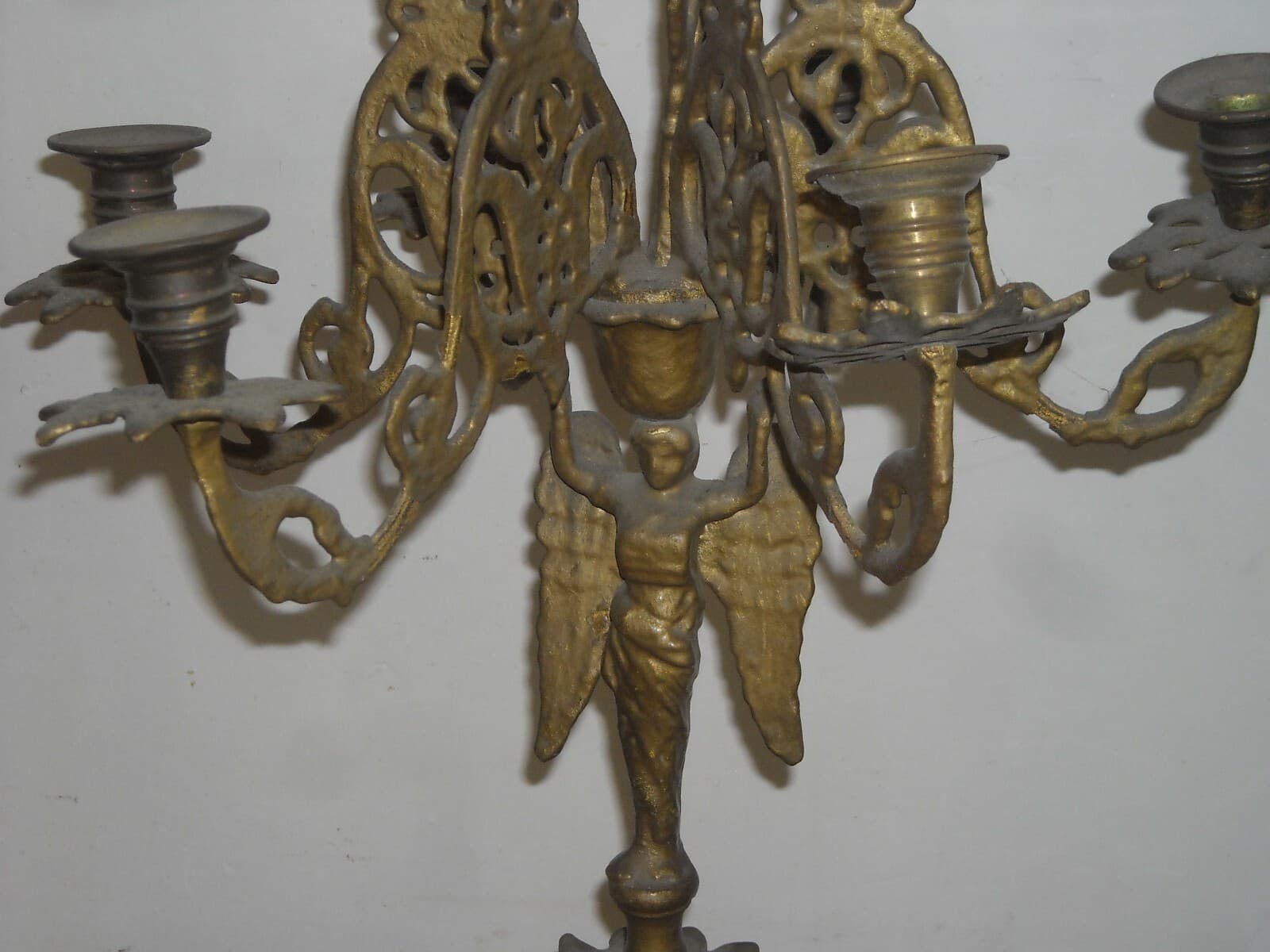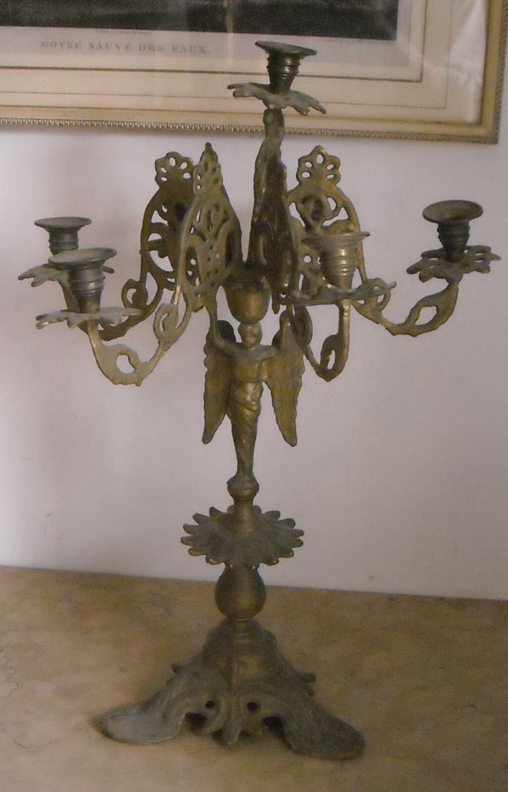 Antica Lampada Candelabro In Ottone Con Angelo, XIX Secolo