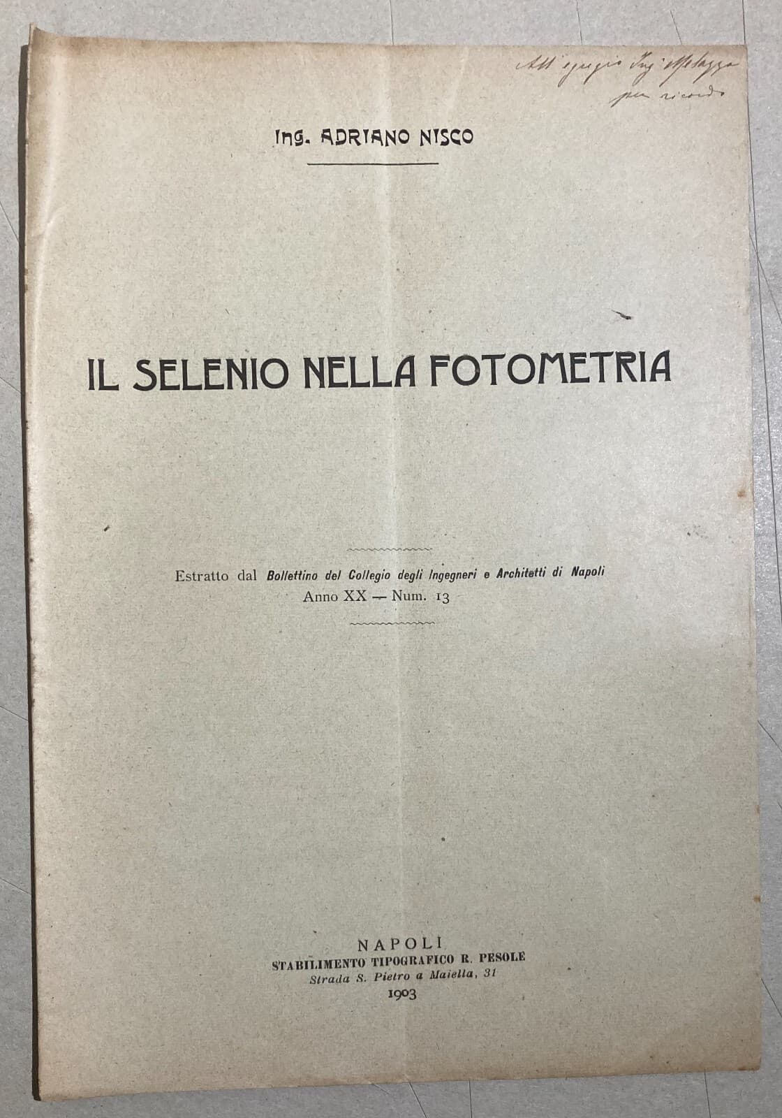 Il Selenio Nella Fotometria: Adriano Nisco, 1903