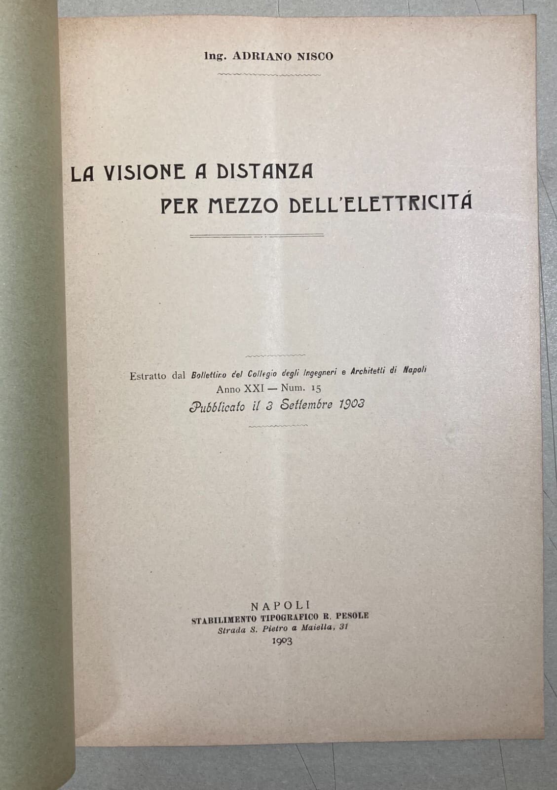 Adriano Nisco, La Visione A Distanza Per Mezzo Dell'Elettricità (1903)
