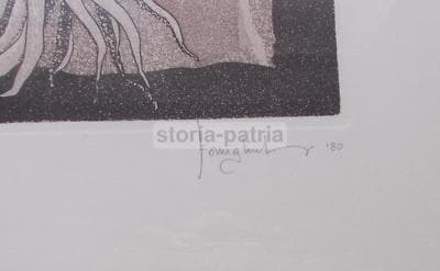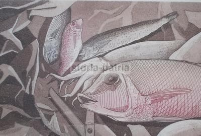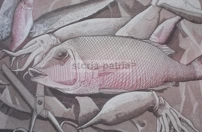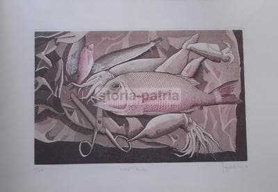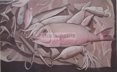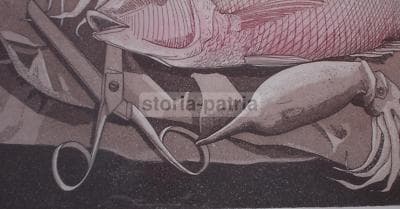 Arte Grafica Moderna: Cucina, Pesce, Calamari, Forbici. Opera d'Arte, 1980