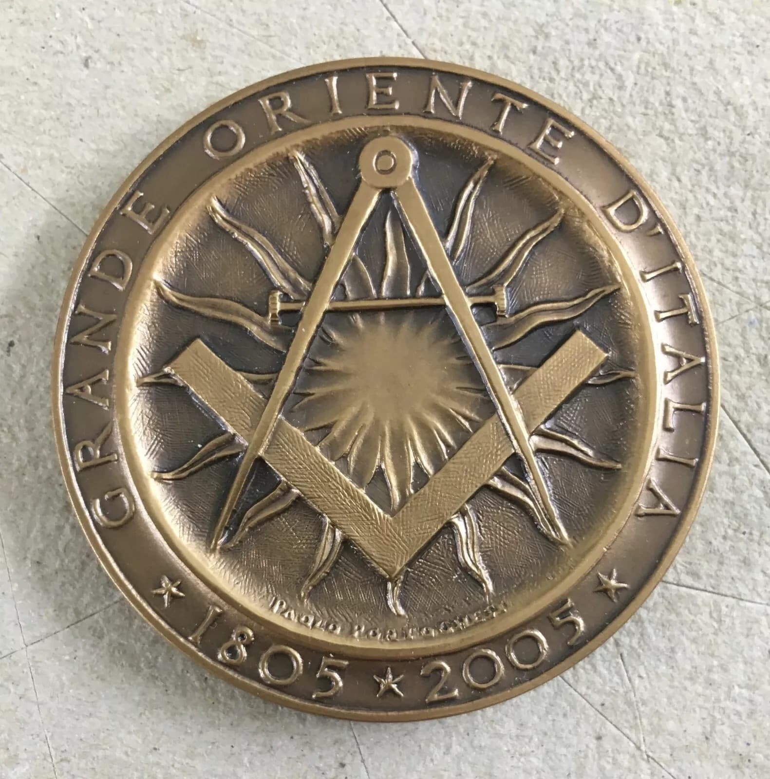 Medaglia d'Arte Paolo Portoghesi: Allegoria Massonica Grande Oriente D'Italia, 2005