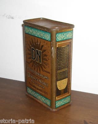 Caccia, Cacciatori: Scatola Pubblicitaria d'Epoca In Latta Nobel Avigliana