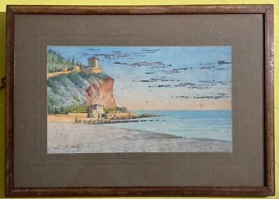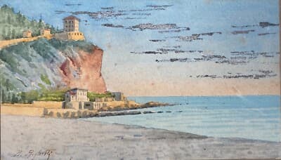 Paesaggio Con Marina E Case, Acquarello Firmato Righetti