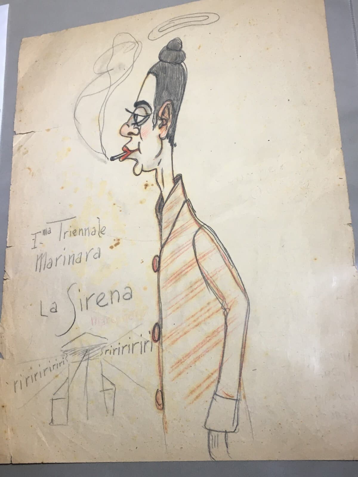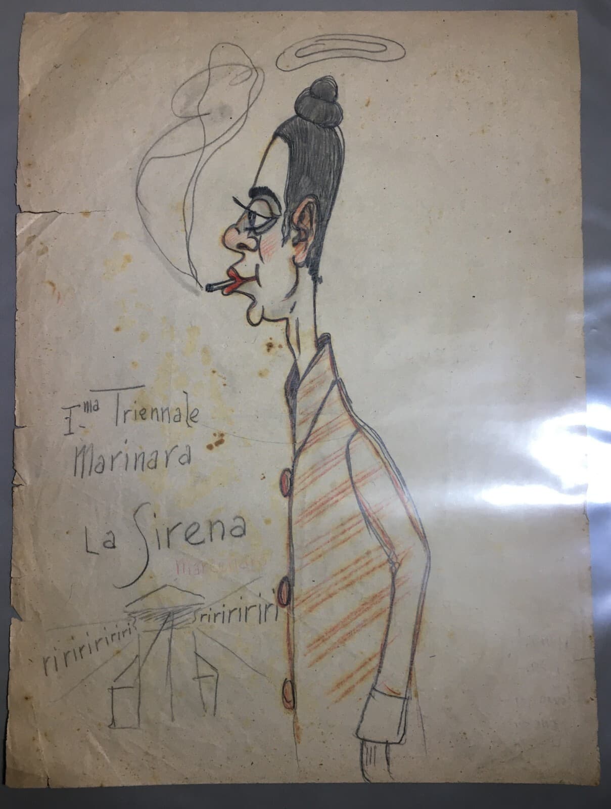 Arte: Antico Disegno Caricaturale Pubblicitario La Sirena Triennale Marinara