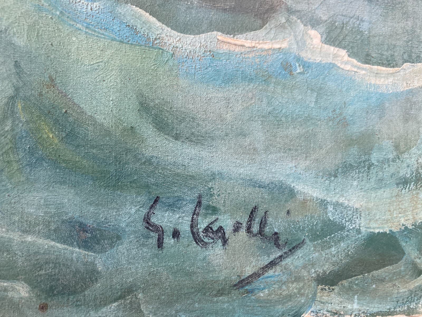 Arte Decorativa Del '900: Grande Dipinto Originale, Marina Panoramica Di Giuseppe Caselli