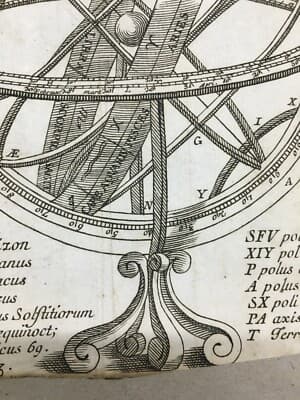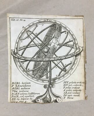 Astronomia: Antico Planetario, Sfera Armillare, Zodiaco E Costellazioni. Incisione Del '700.