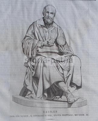 Ritratto Di Galileo Galilei: Opera Scultorea Monumentale, Incisione Del 1840