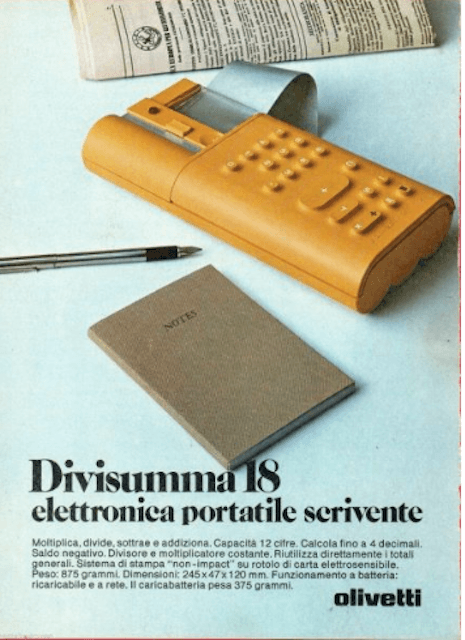Divisumma 18. Calcolatrice d'Epoca Olivetti, Design Mario Bellini