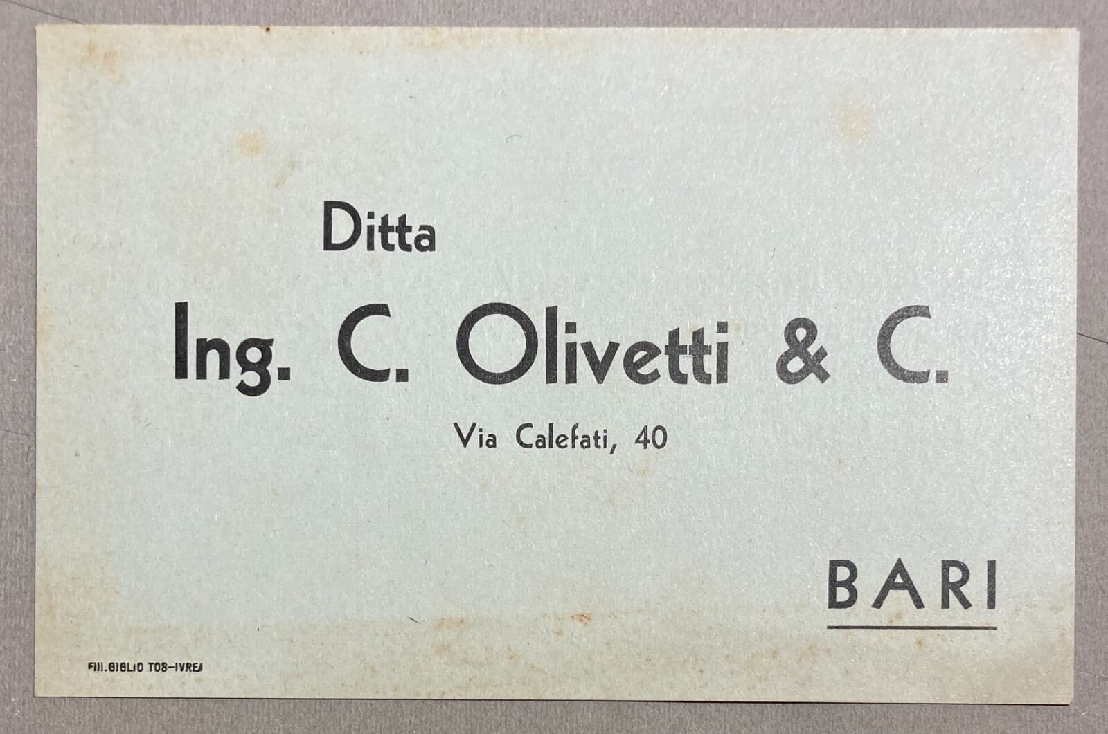 Puglia, Bari: Cartolina Pubblicitaria Olivetti. Manutenzione. Giglio Tos (Ivrea)