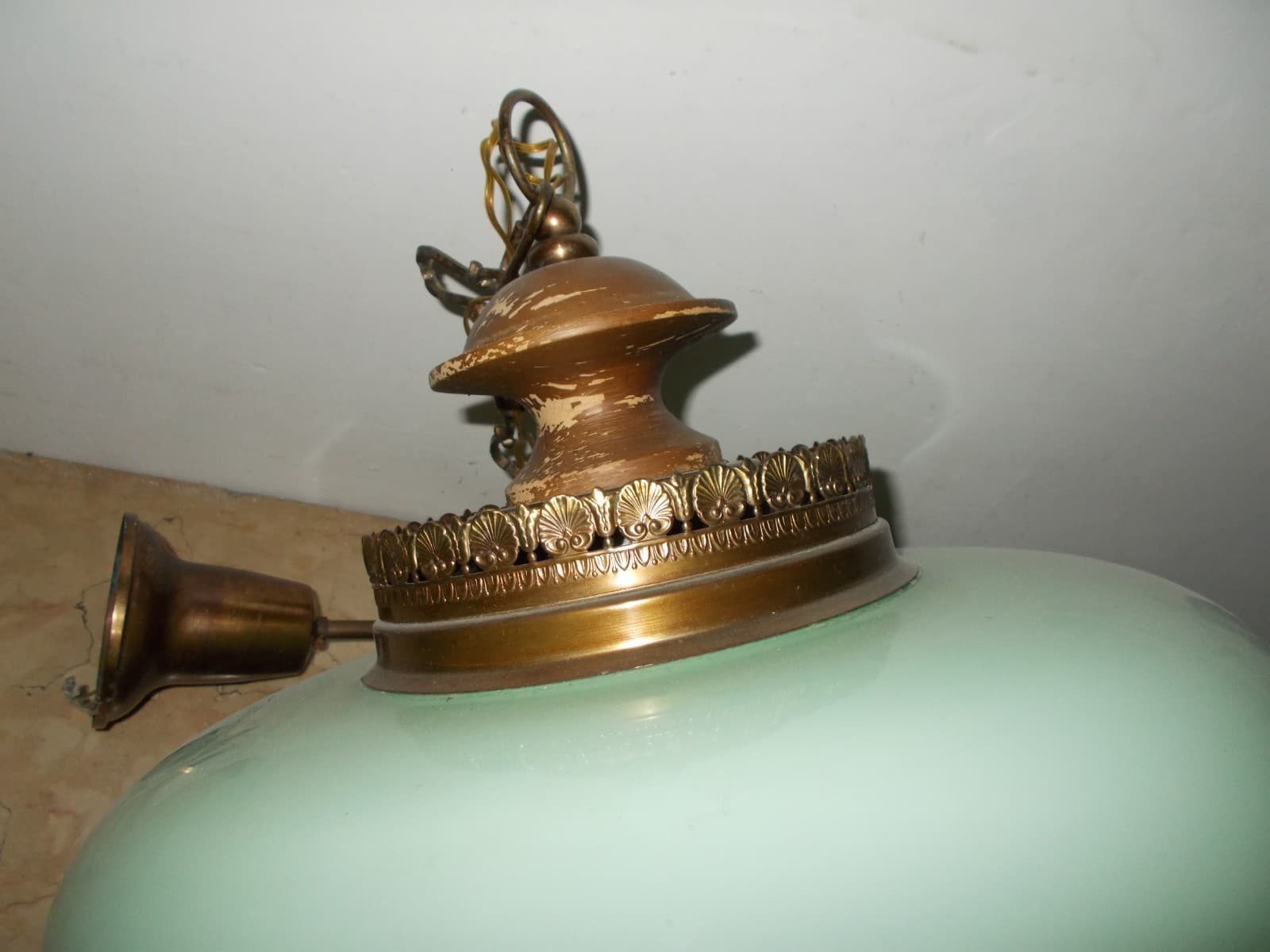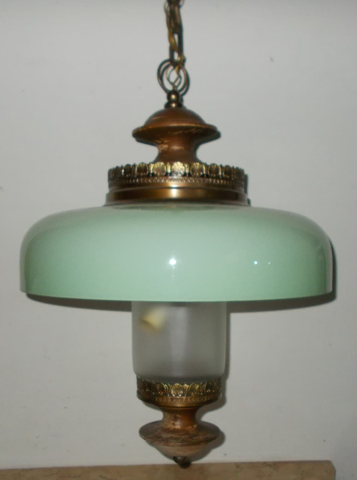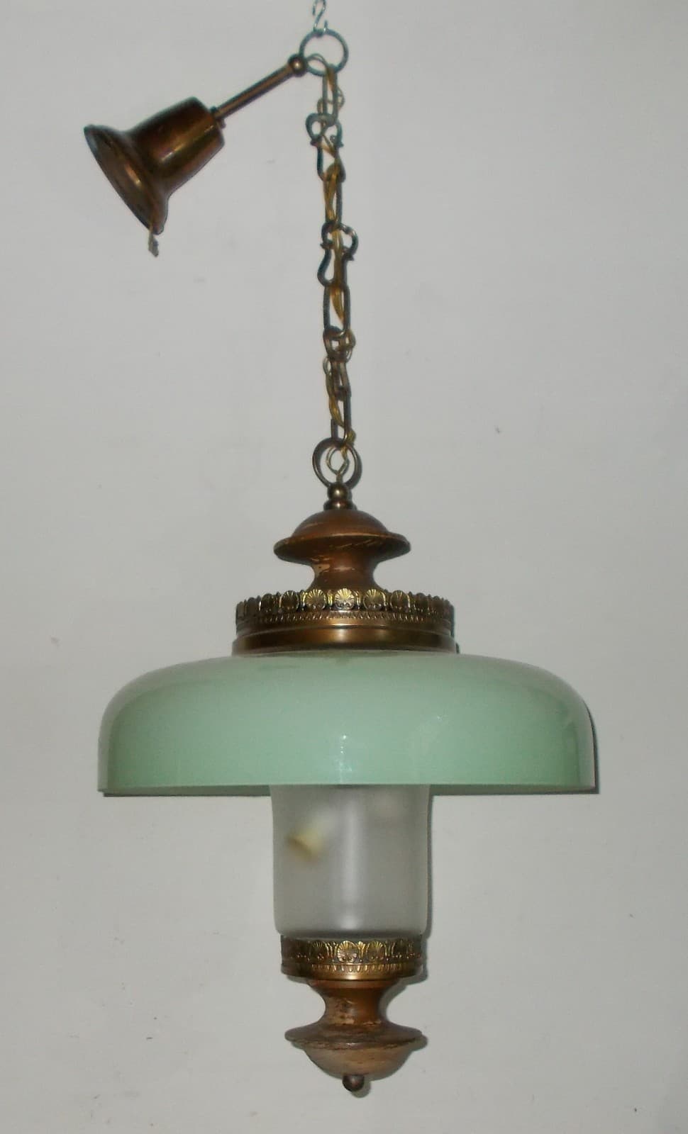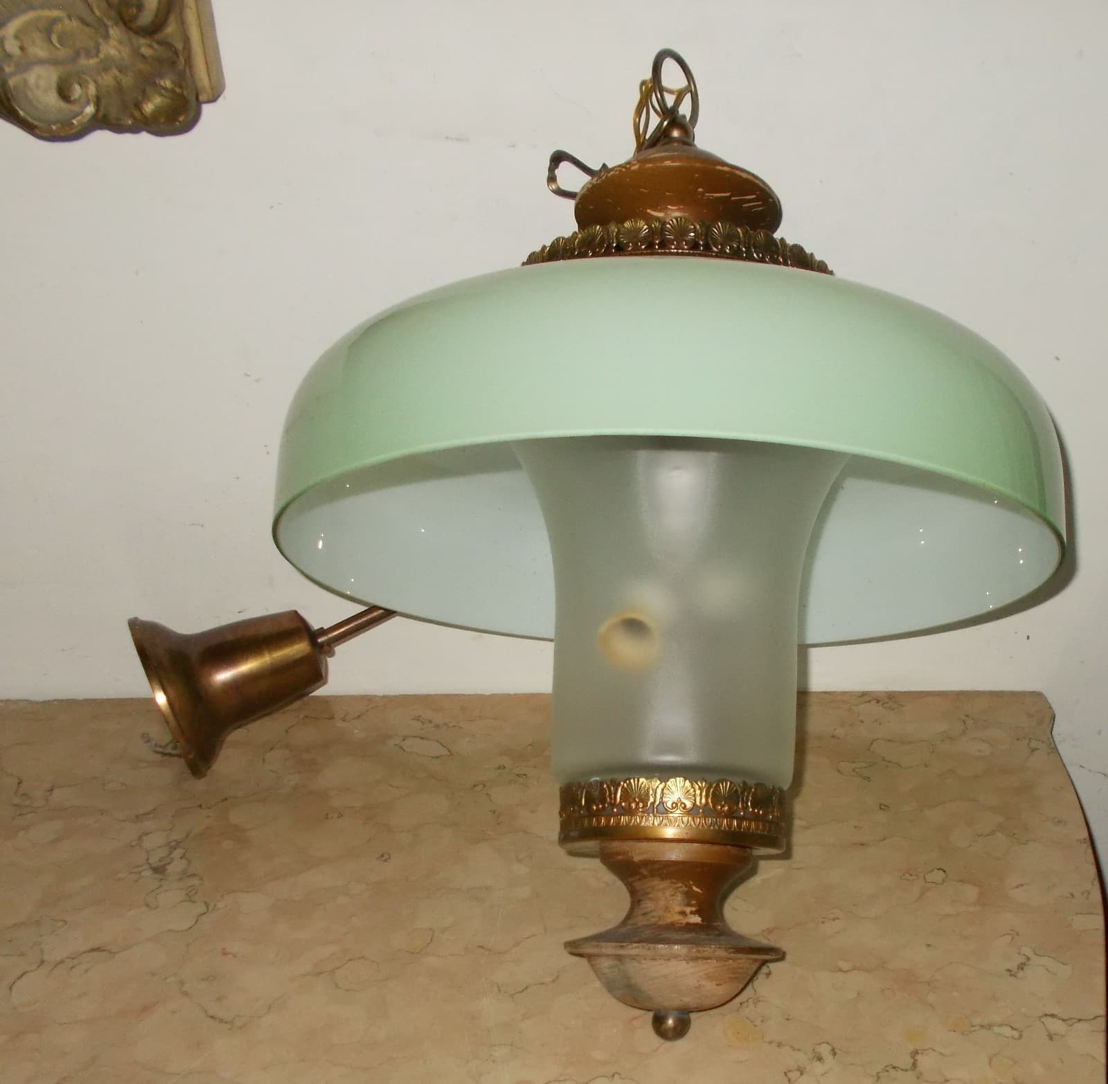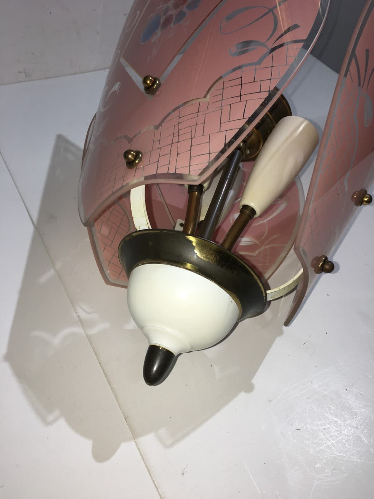 Decorativa Lampada d'Epoca. Lampadario Con Tre Vetri Decorativi