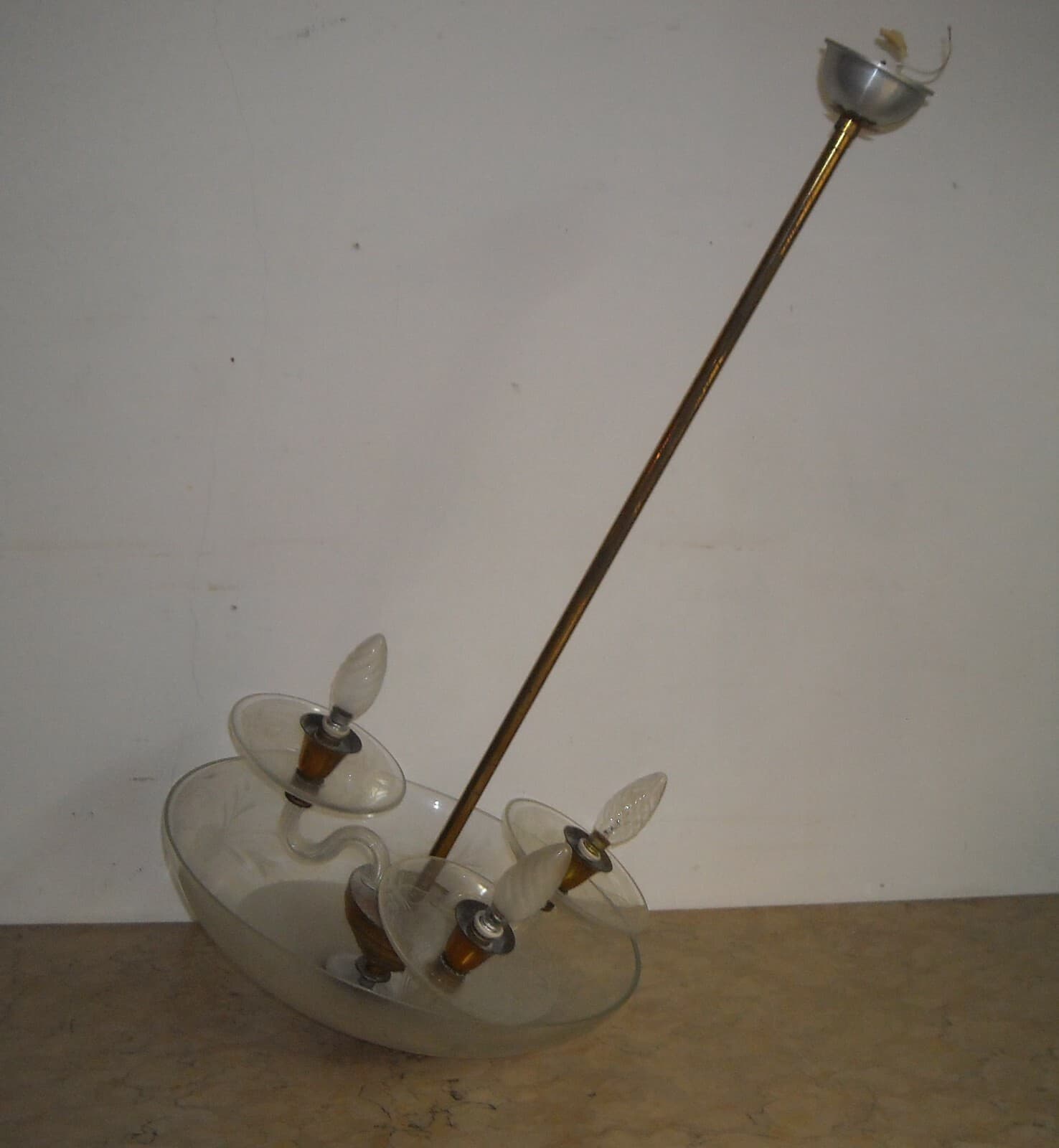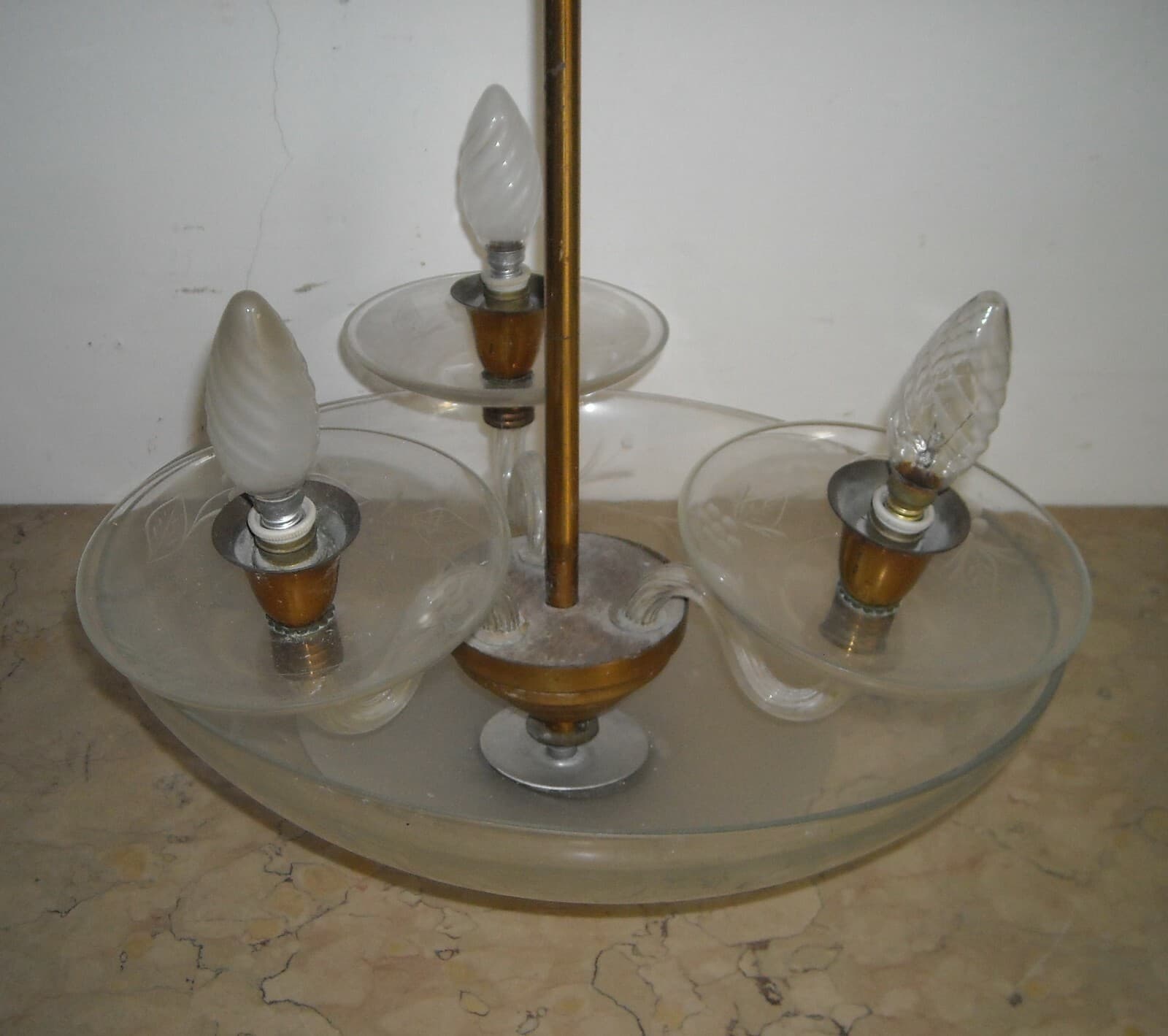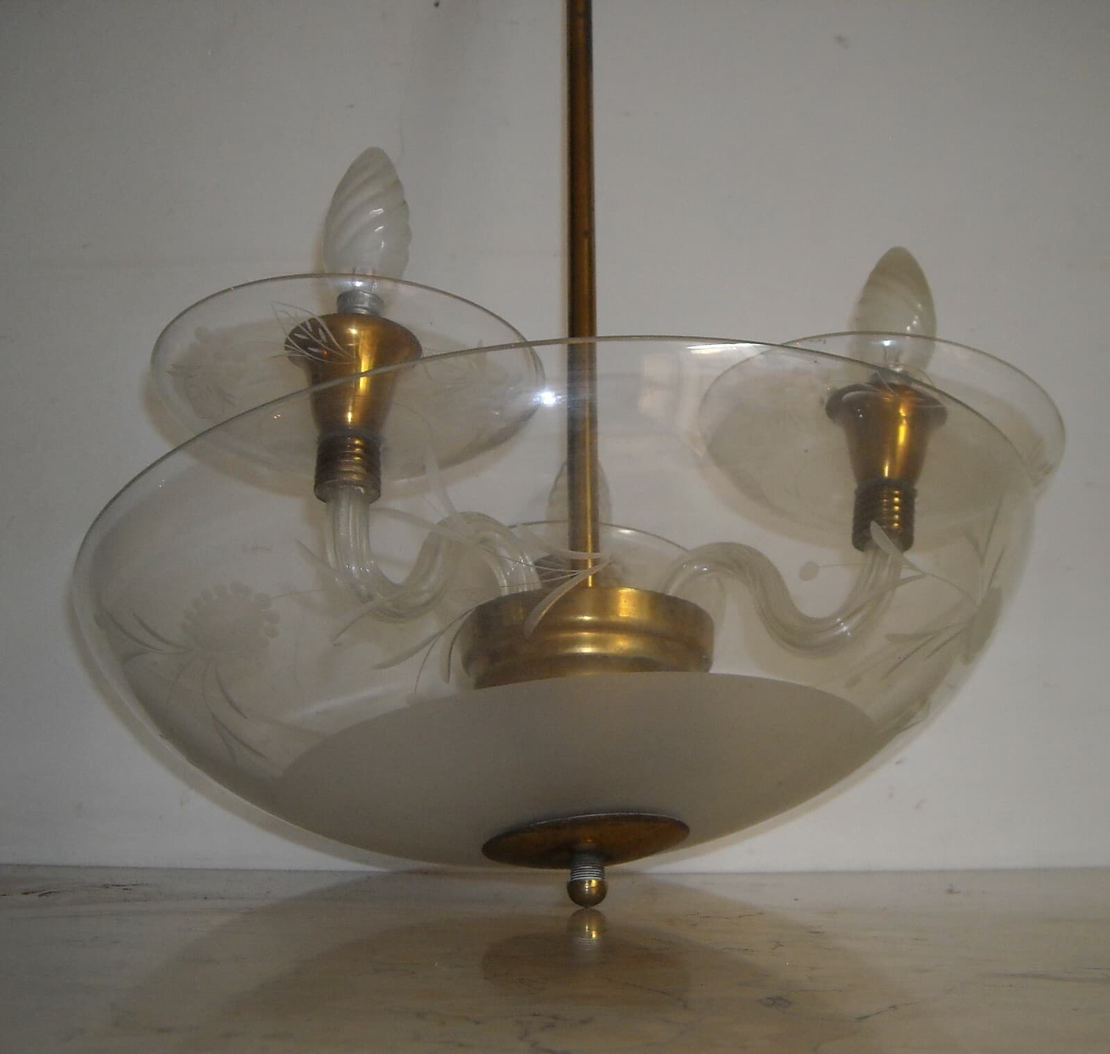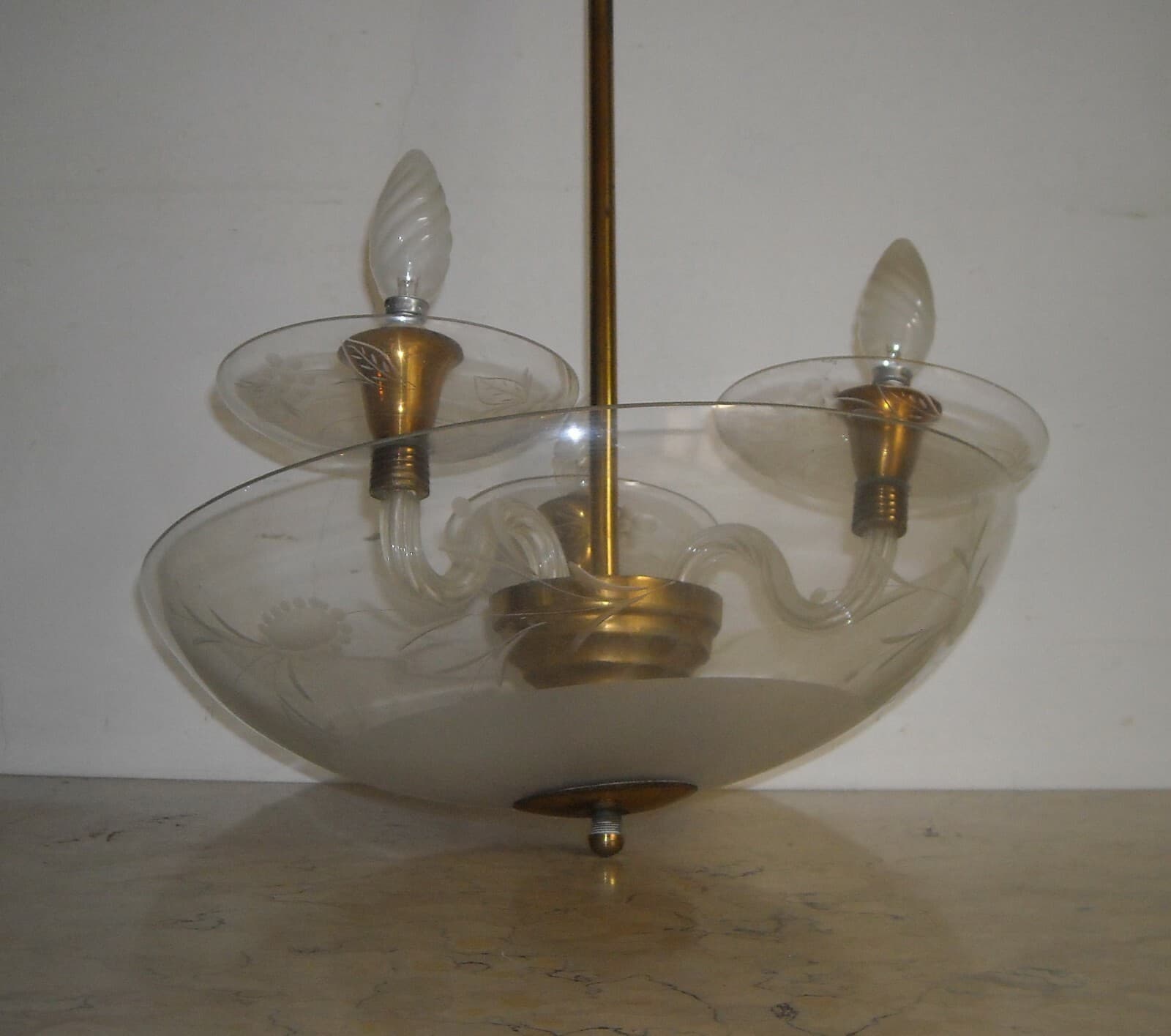 Lampadario d'Epoca Art Déco In Vetro Inciso
