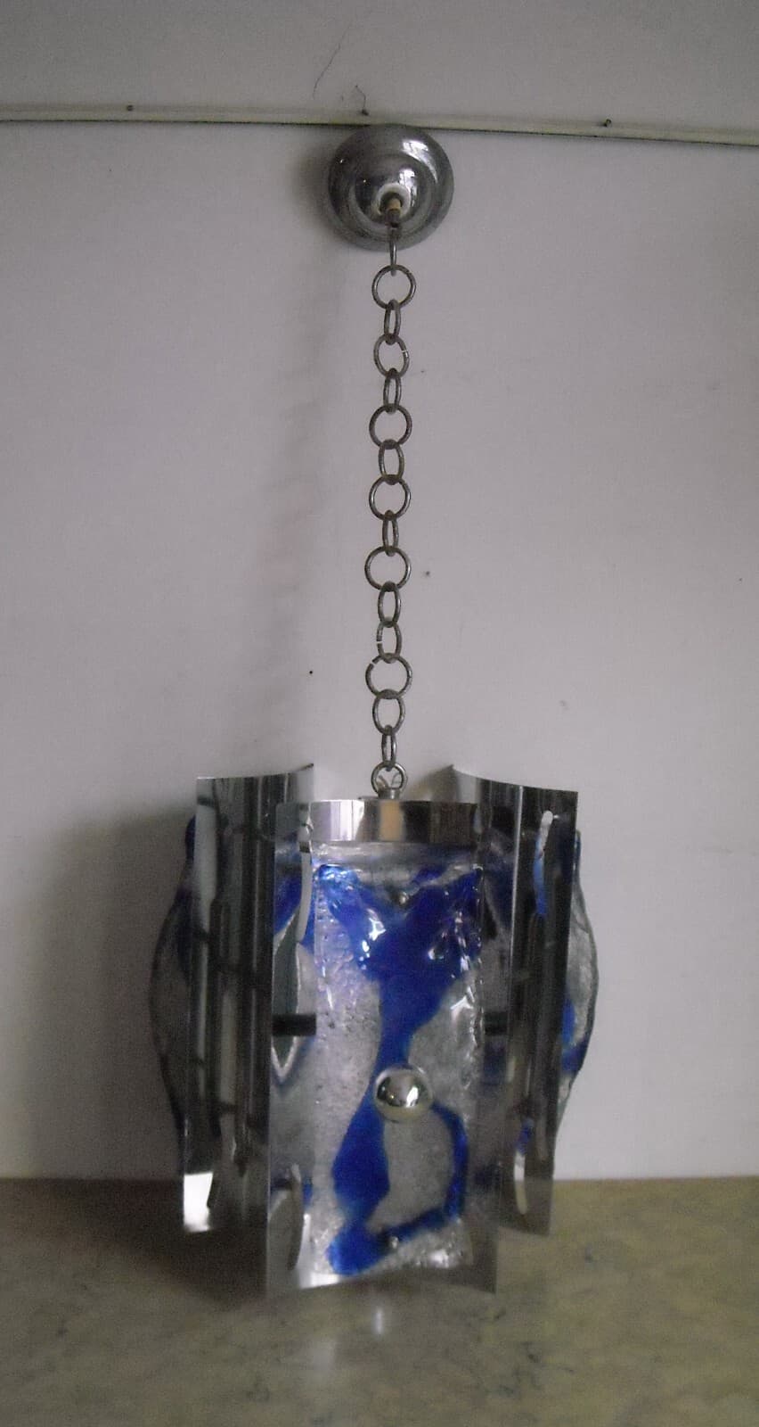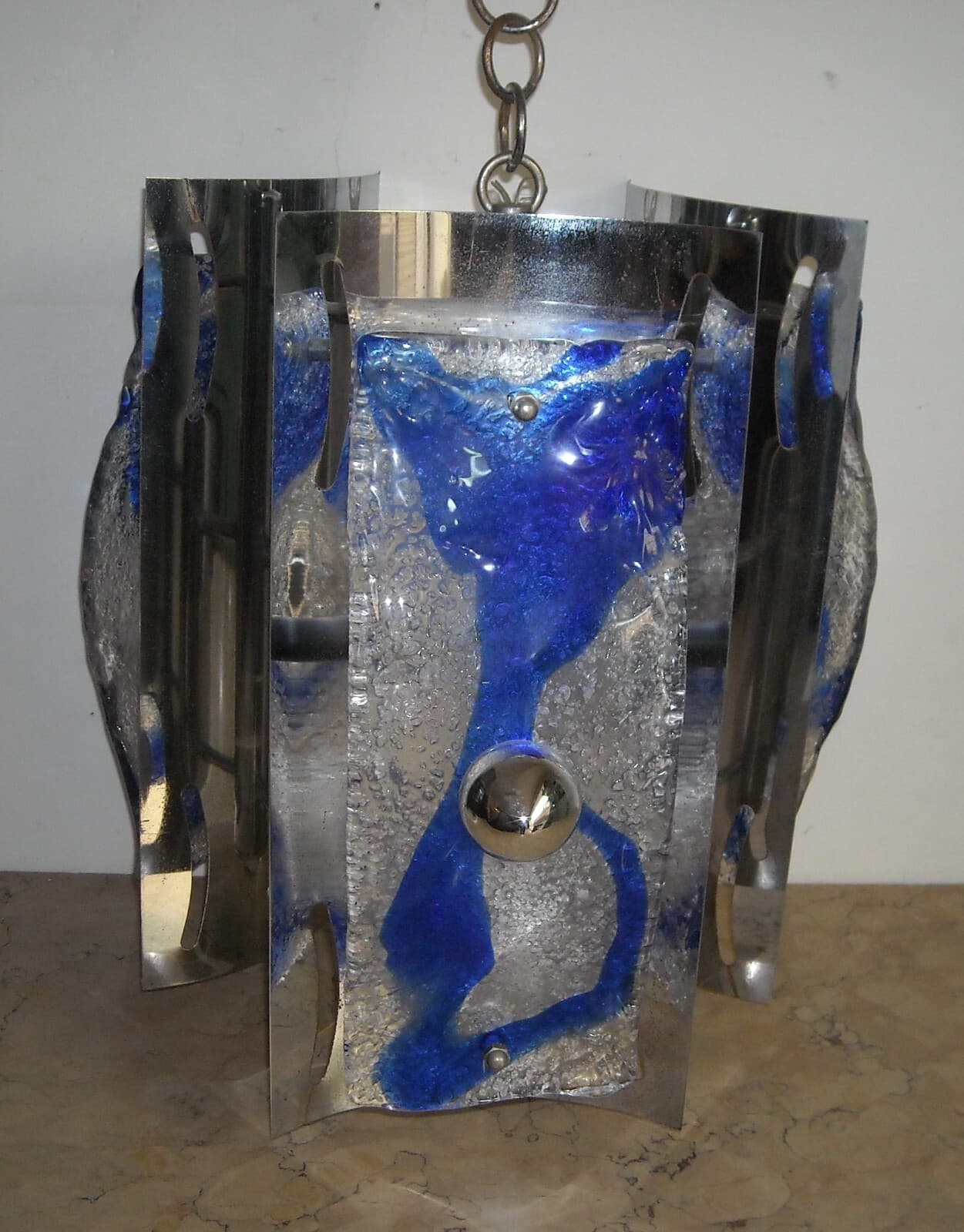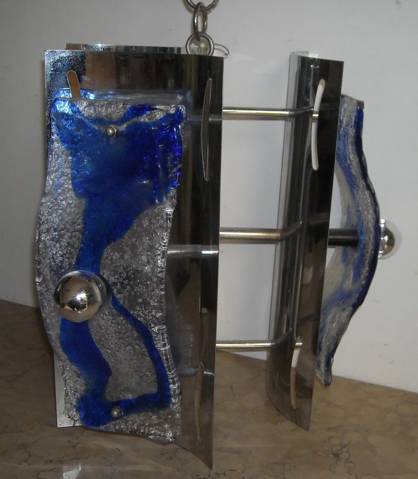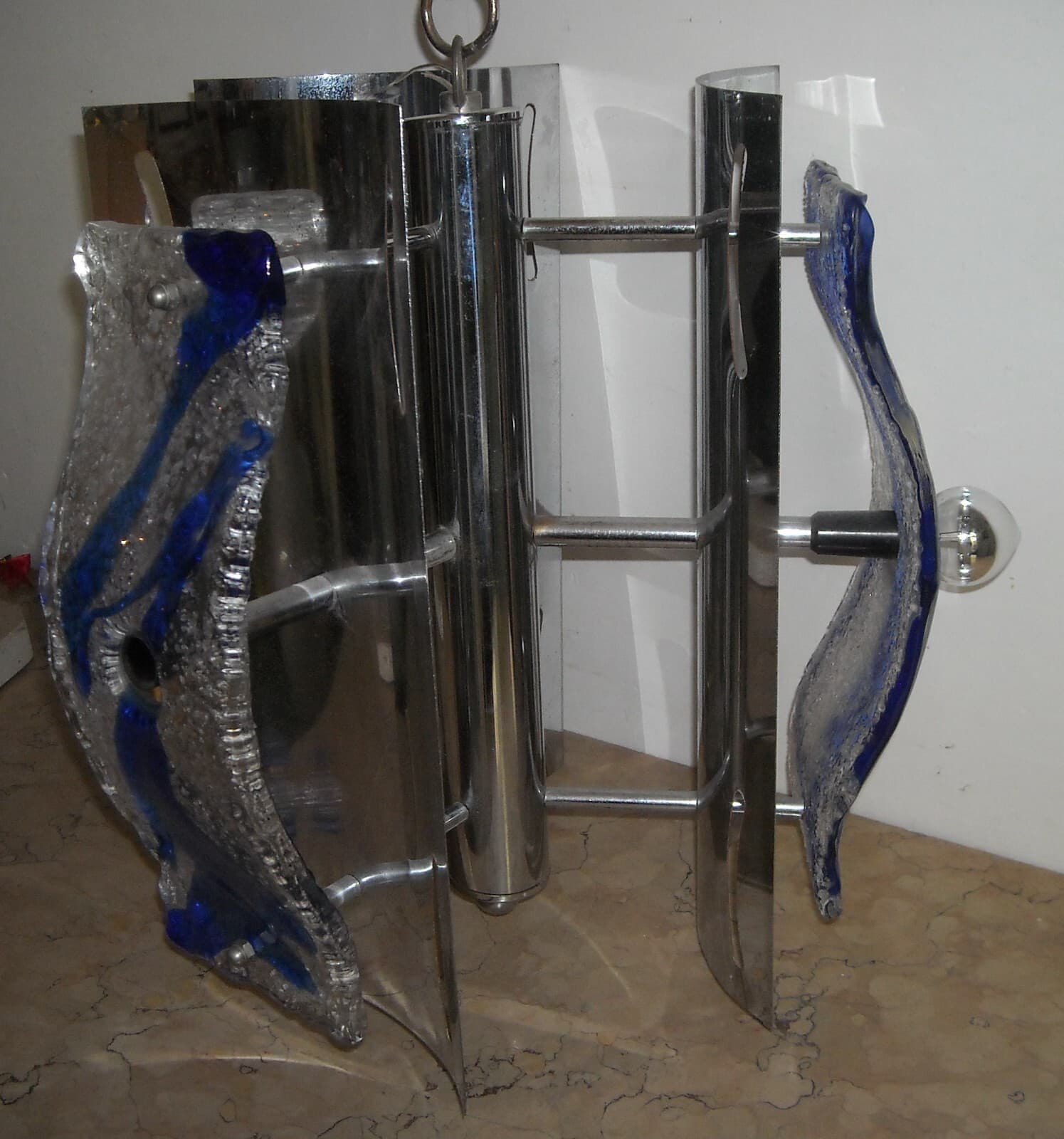 Lampadario Di Design In Vetro Di Murano E Metallo Cromato, Anni '60 '70