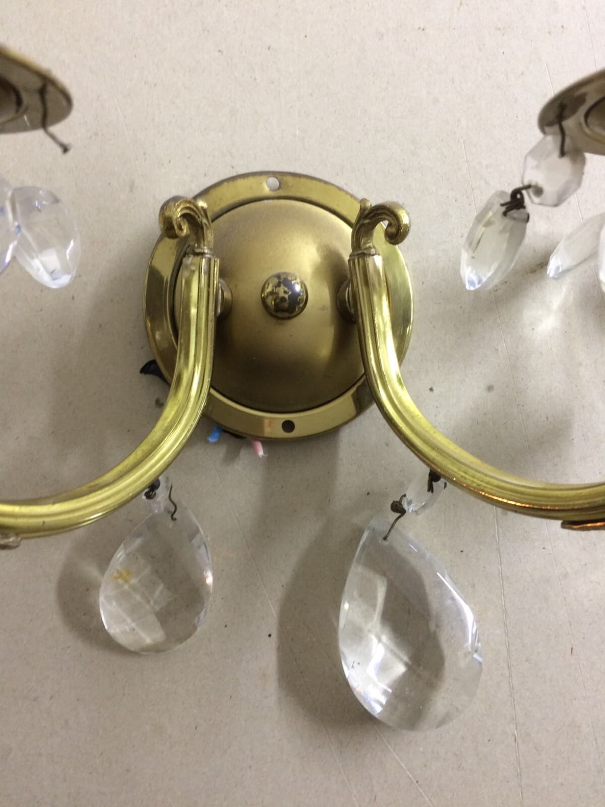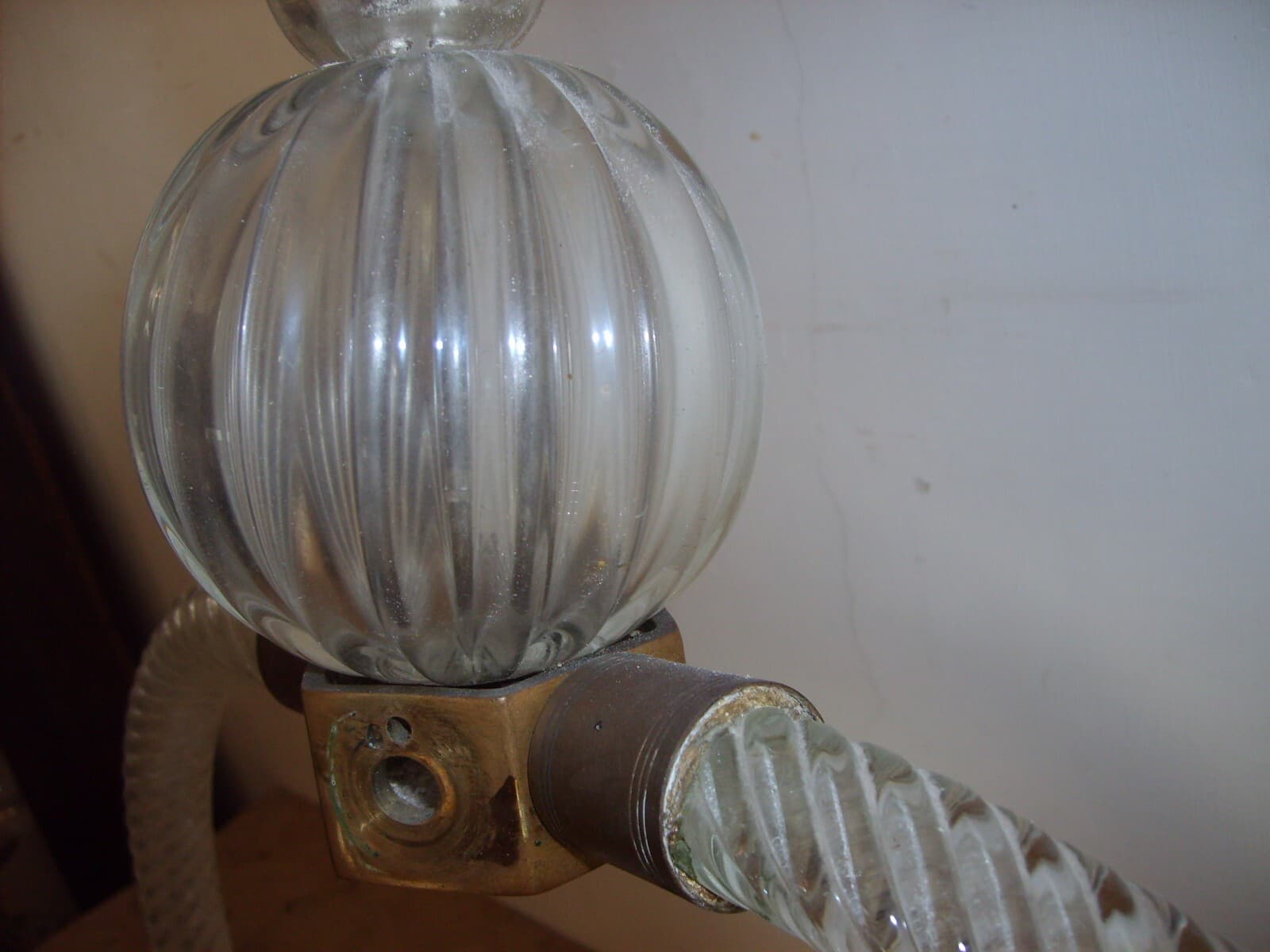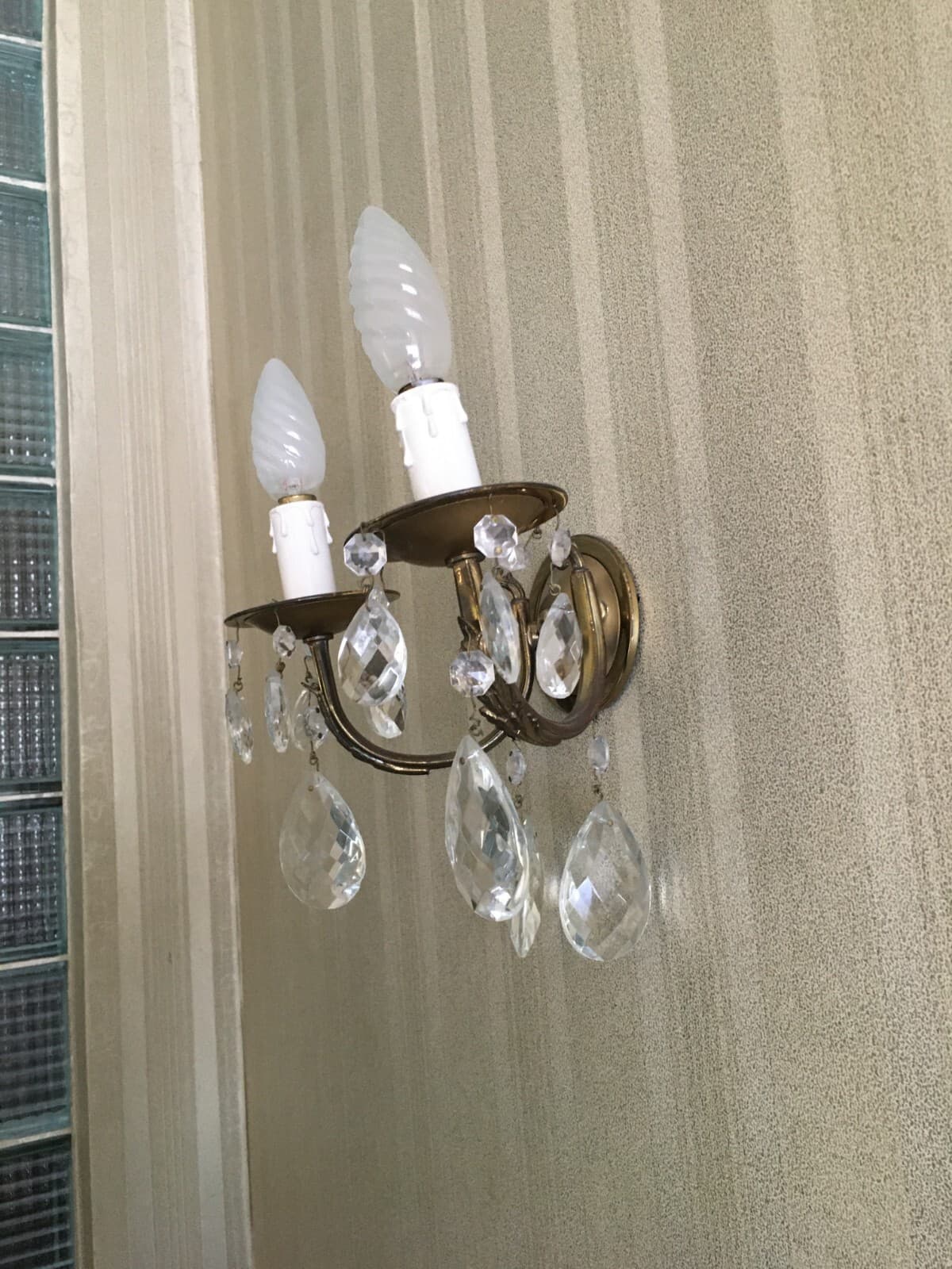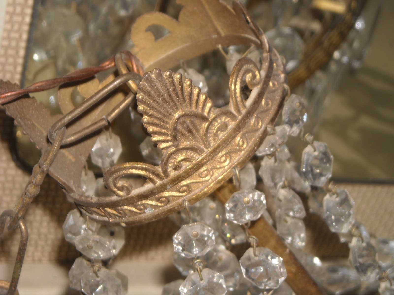 Applique Decorativa Con Prismi In Ottone E Vetro, Metà Del '900