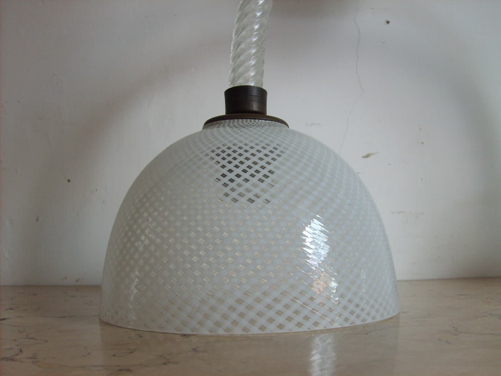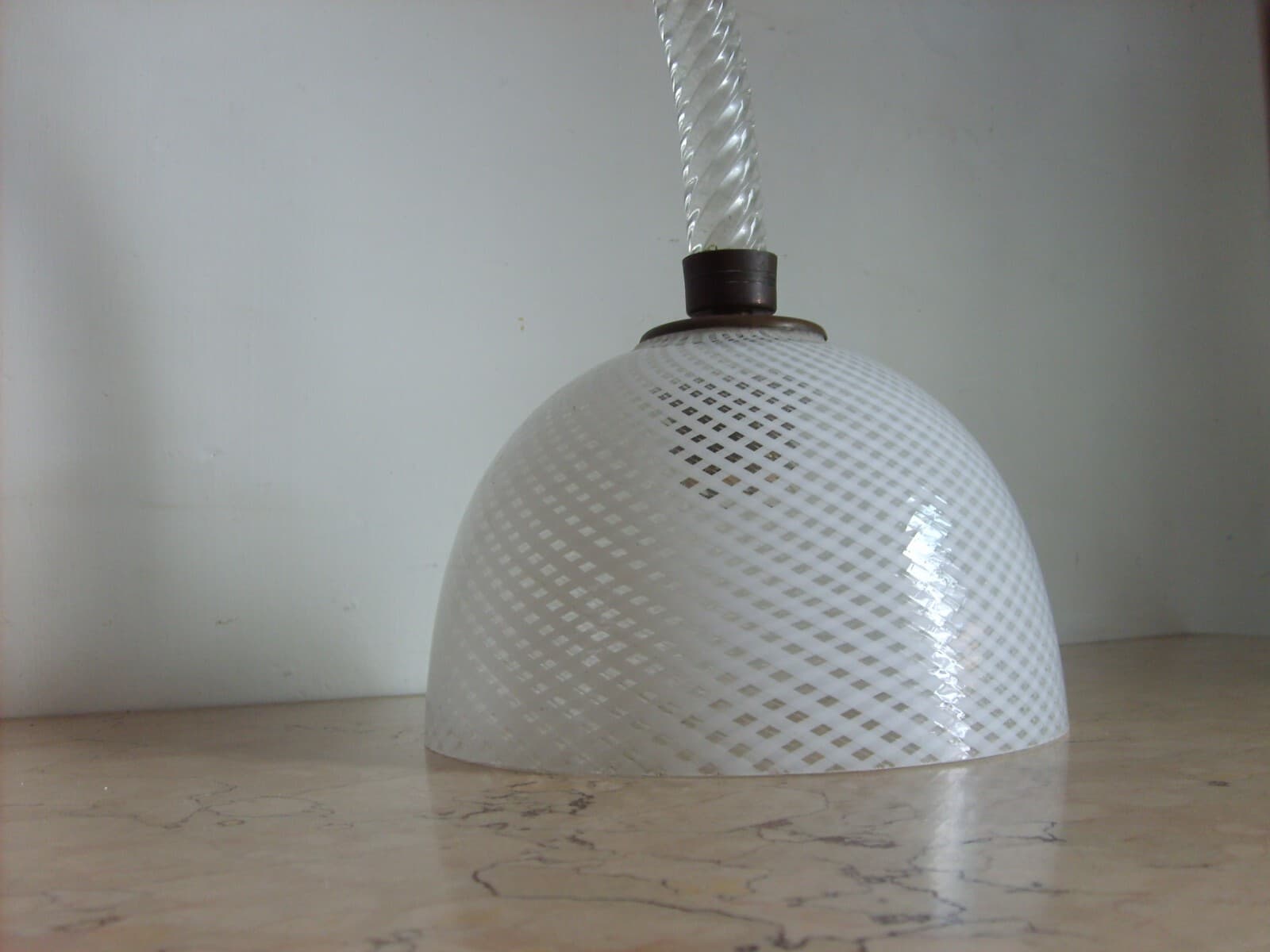 Lampada A Sospensione d'Epoca In Vetro Molato E Design Modernariato
