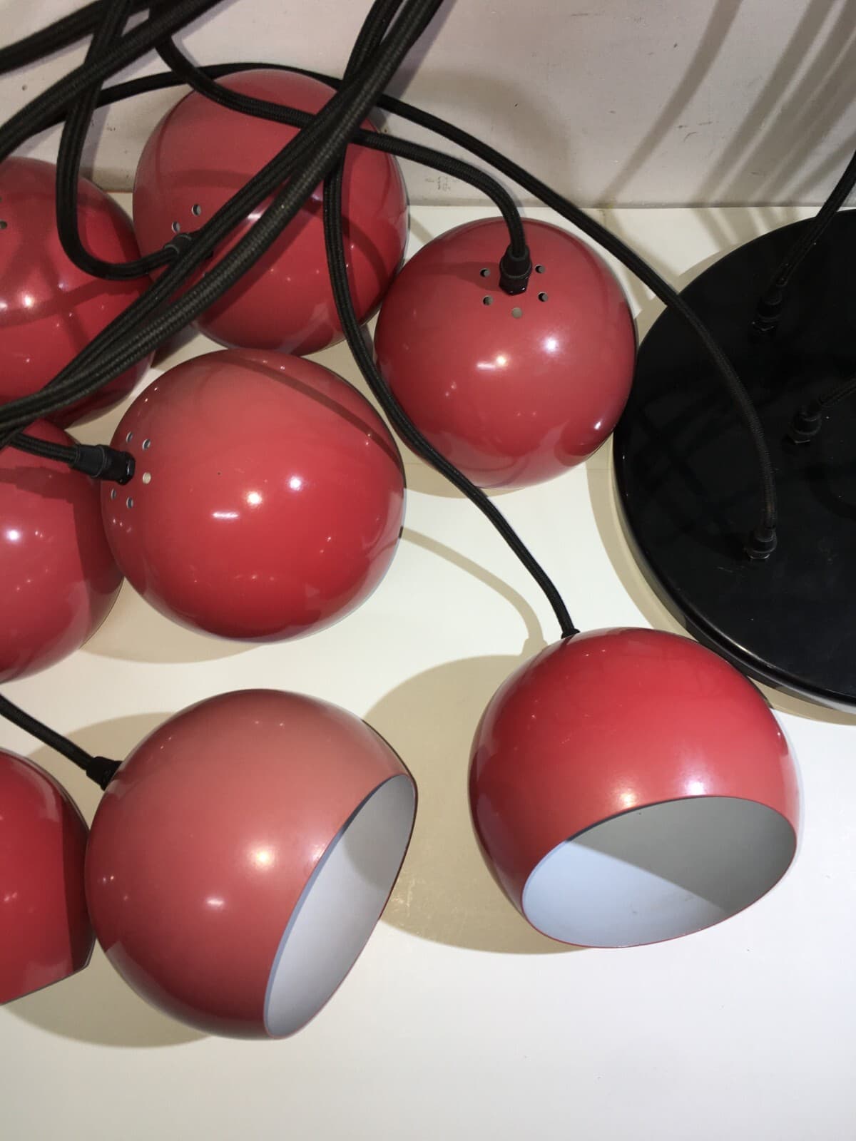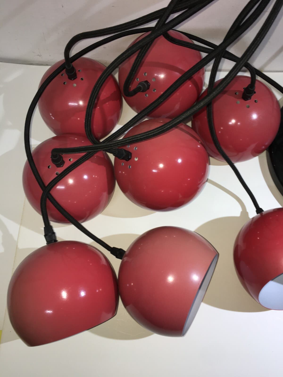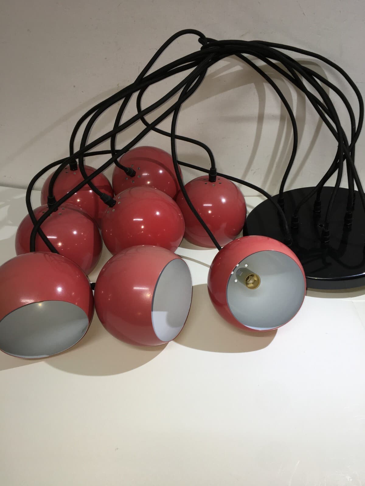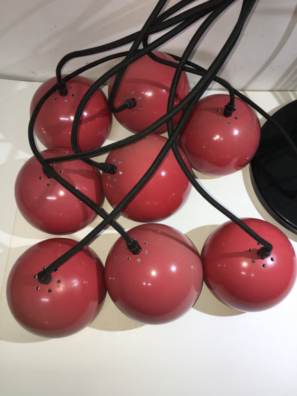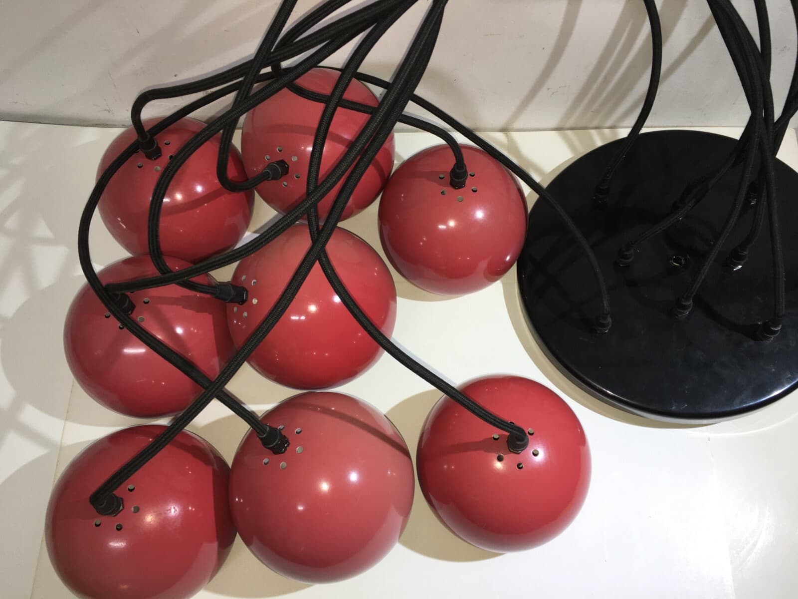 Lampadario Design A Sospensione Space Age Con Otto Globi Rossi