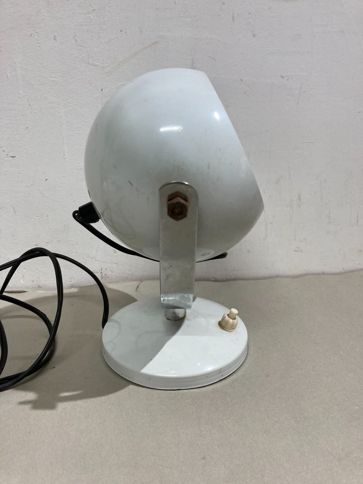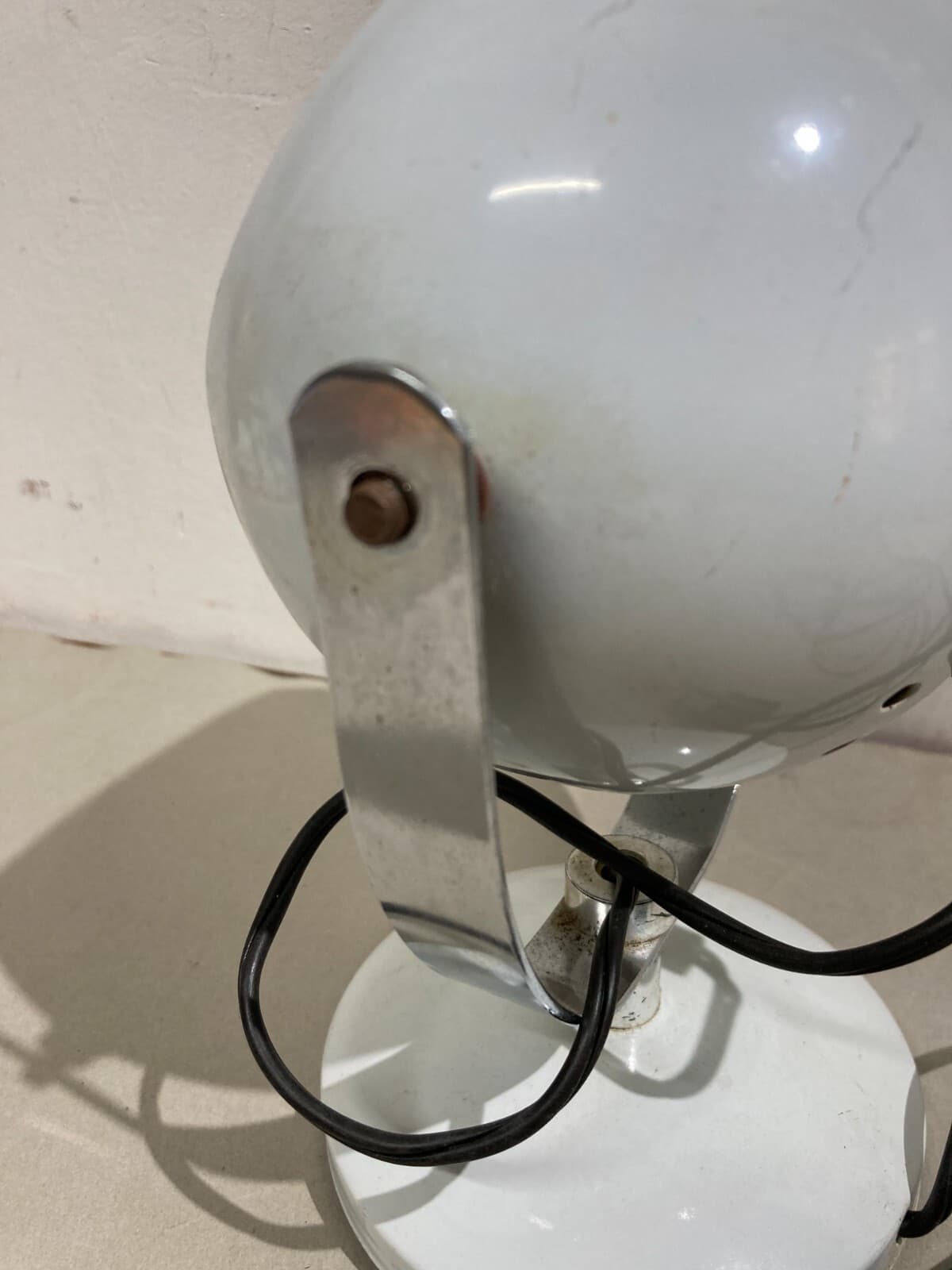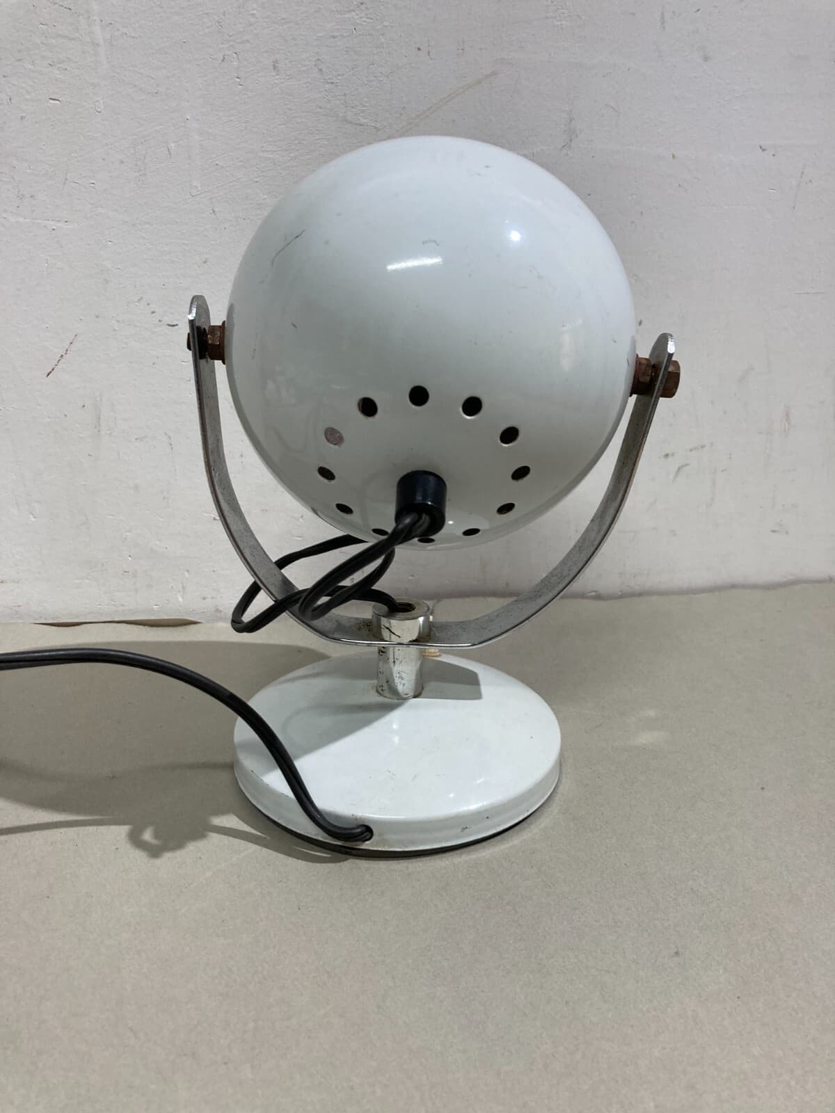Lampada Da Tavolo Sferica In Metallo Laccato Bianco Stile Space Age