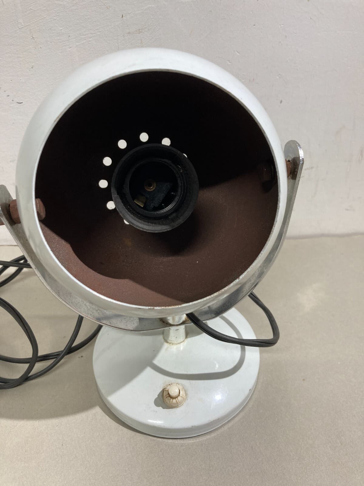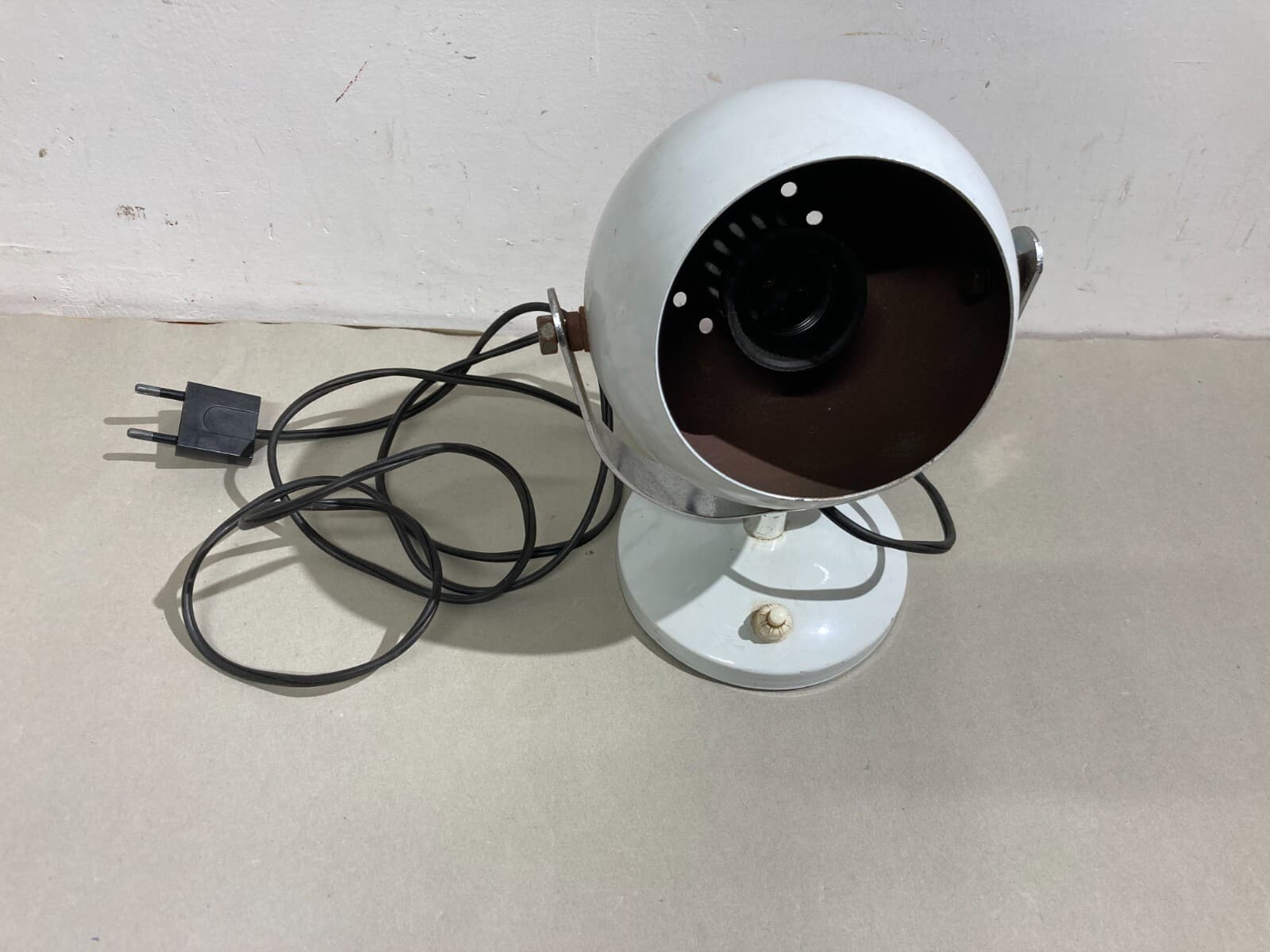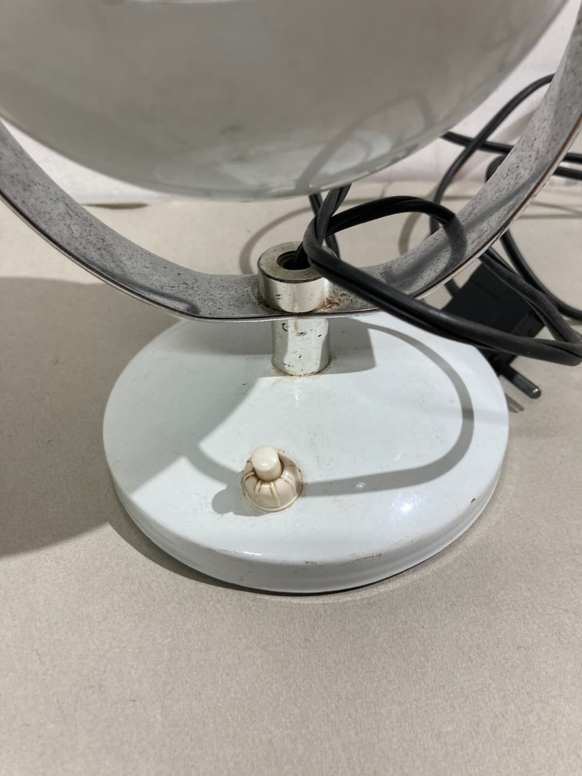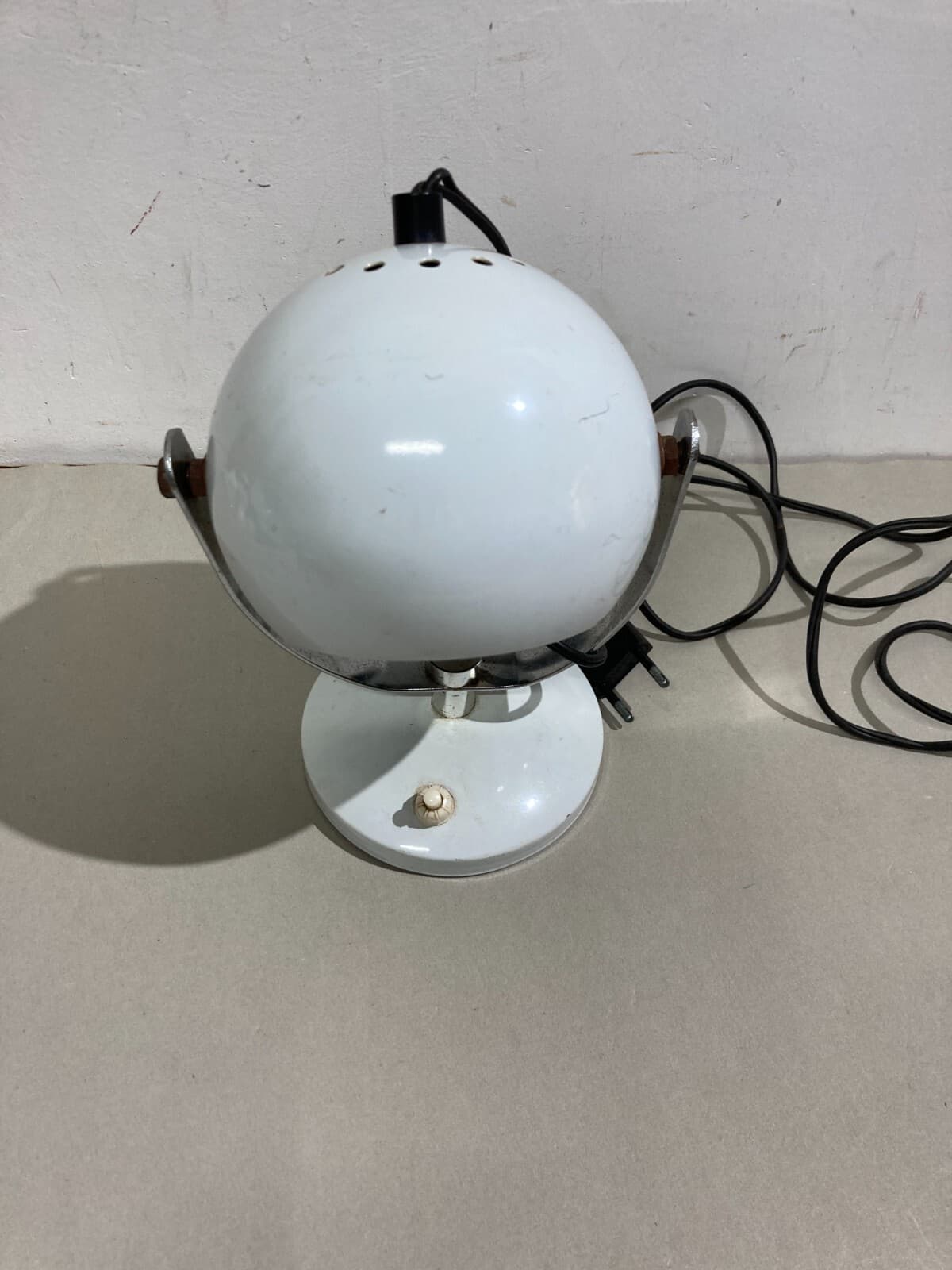 Lampada Da Tavolo Sferica In Metallo Laccato Bianco Stile Space Age
