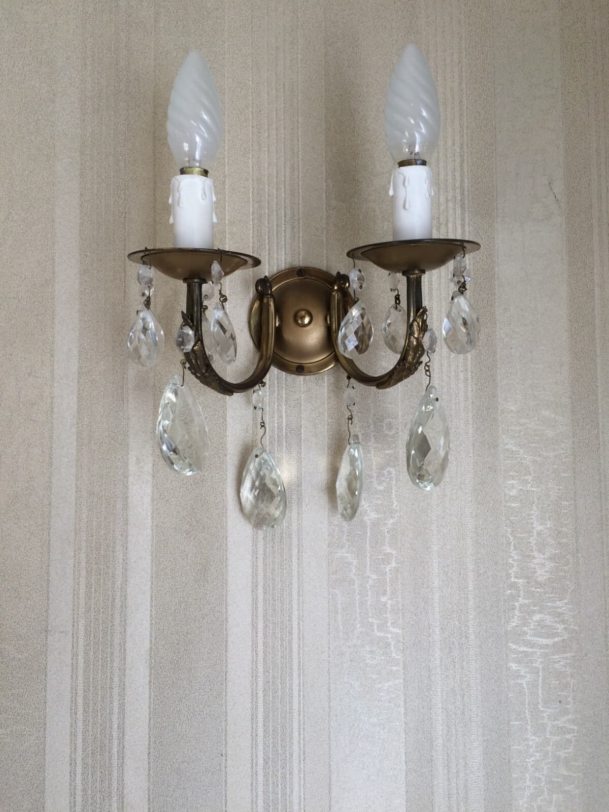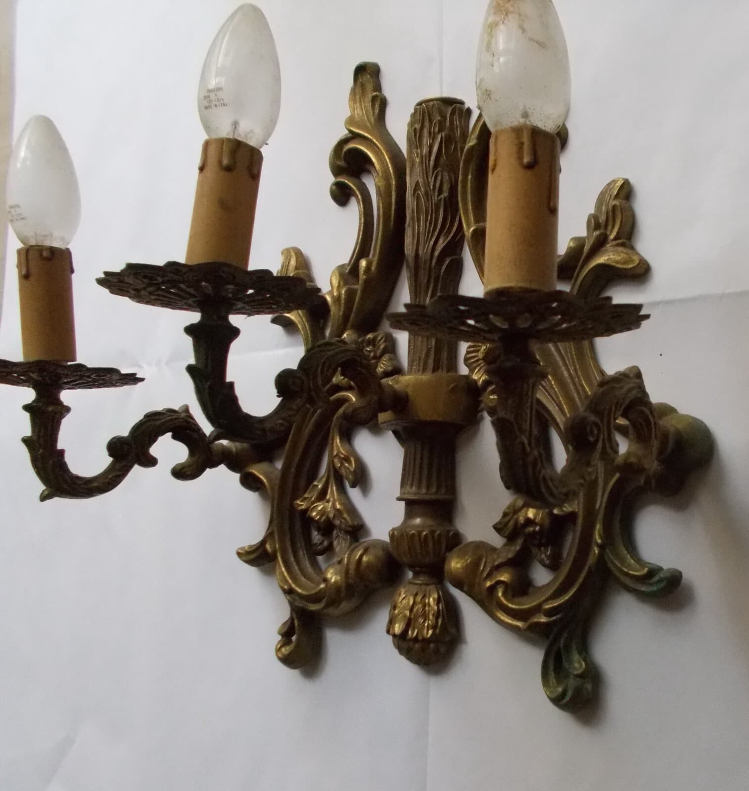 Lampada d'Epoca Con Decoro Artistico: Applique Dorata A Due Luci