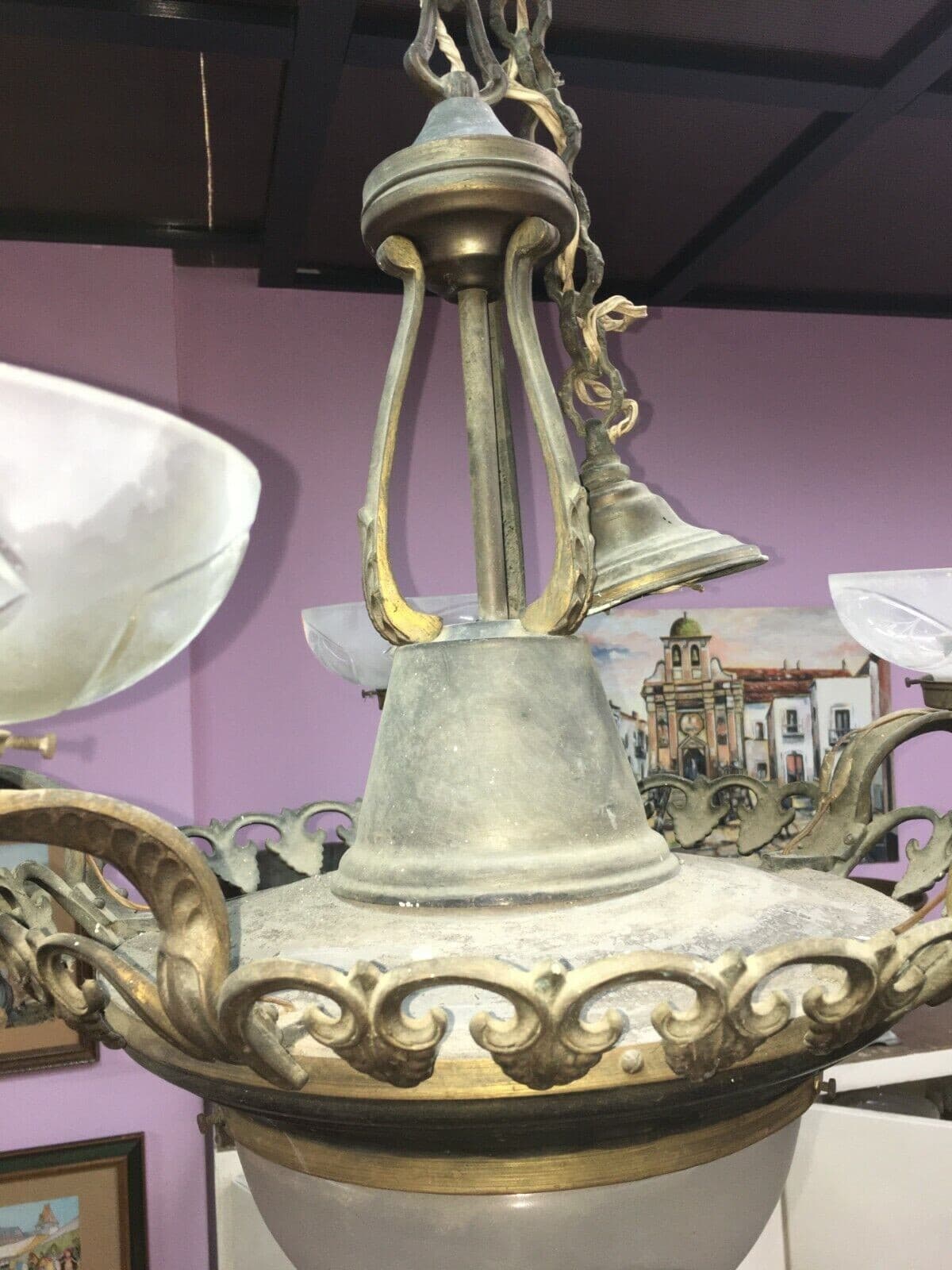 Antico Ricambio Per Lampade O Lampadari: Elemento Decorativo In Ottone Sbalzato