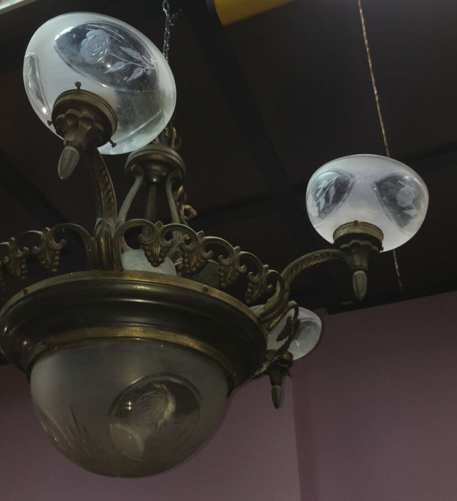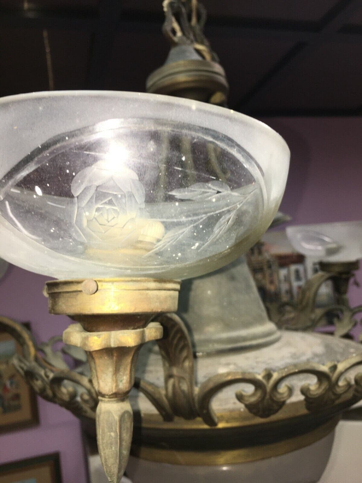 Arredi Antichi Lampada A Sospensione Decorativa Con Vetri Incisi