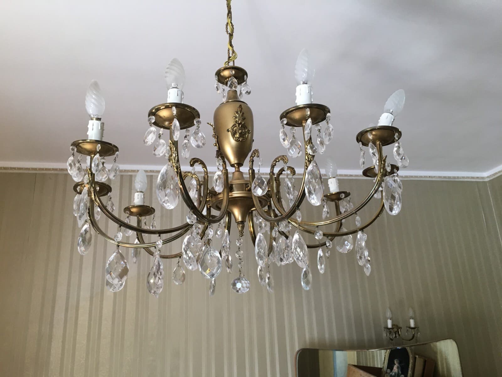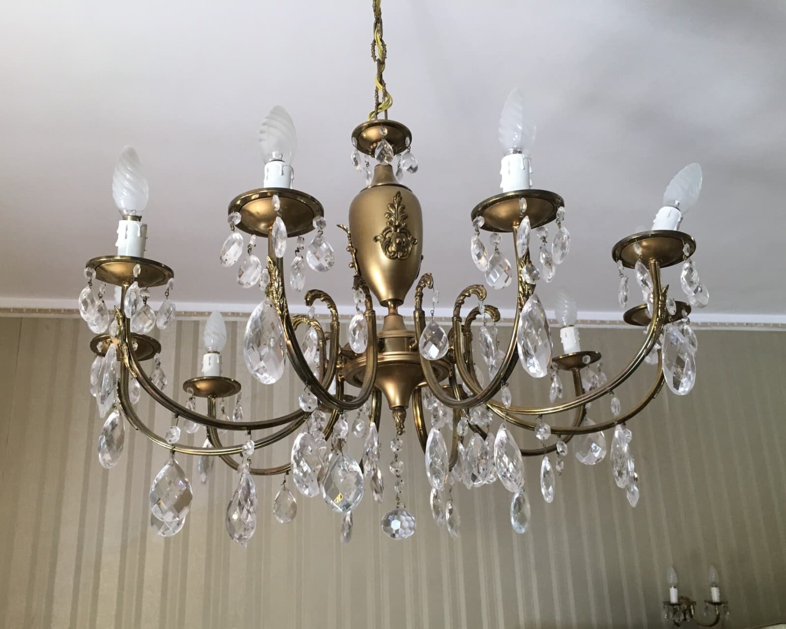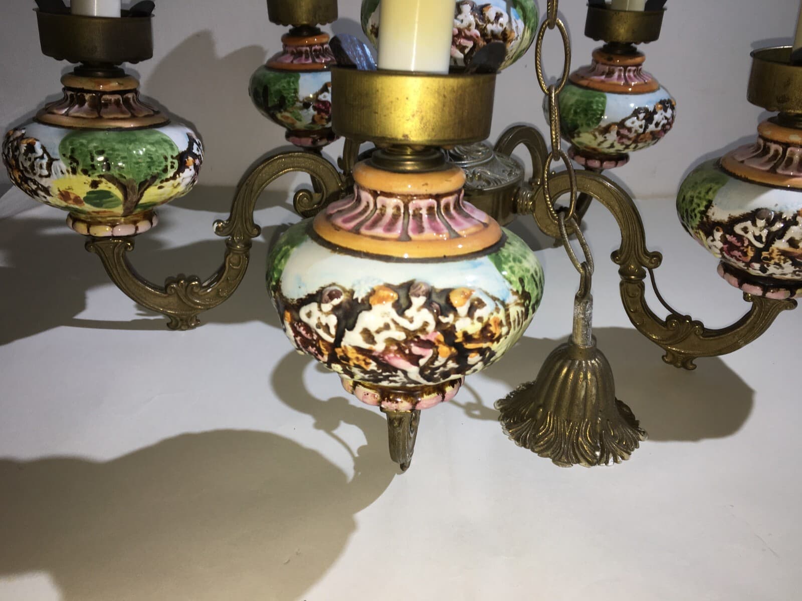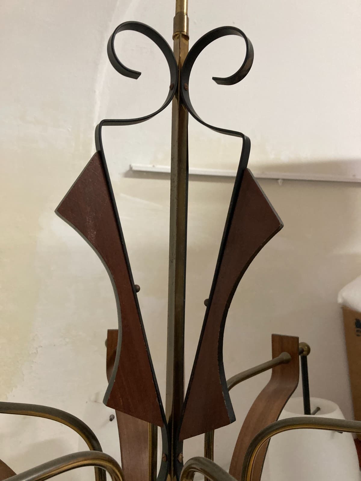 Lampadario Decorativo In Ottone Brunito E Vetro, Anni '60