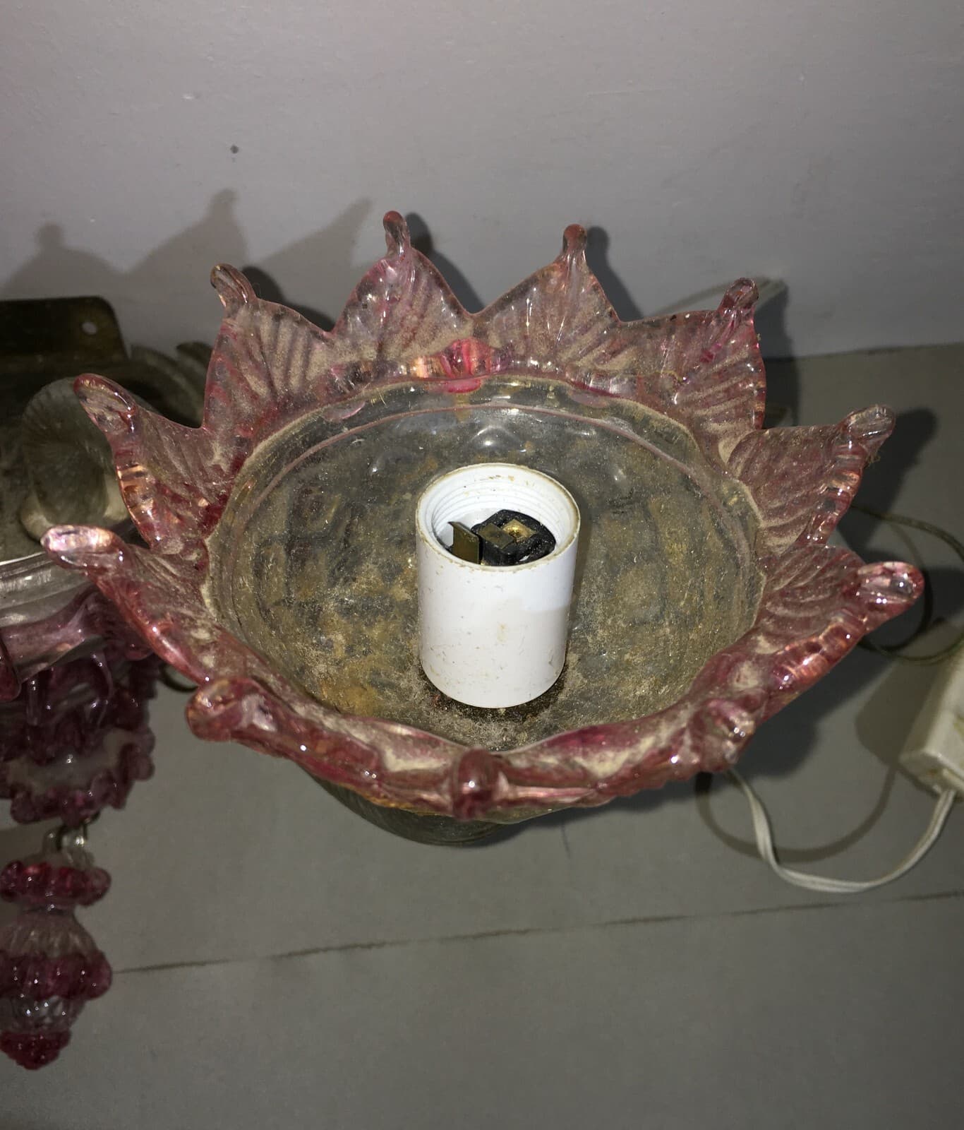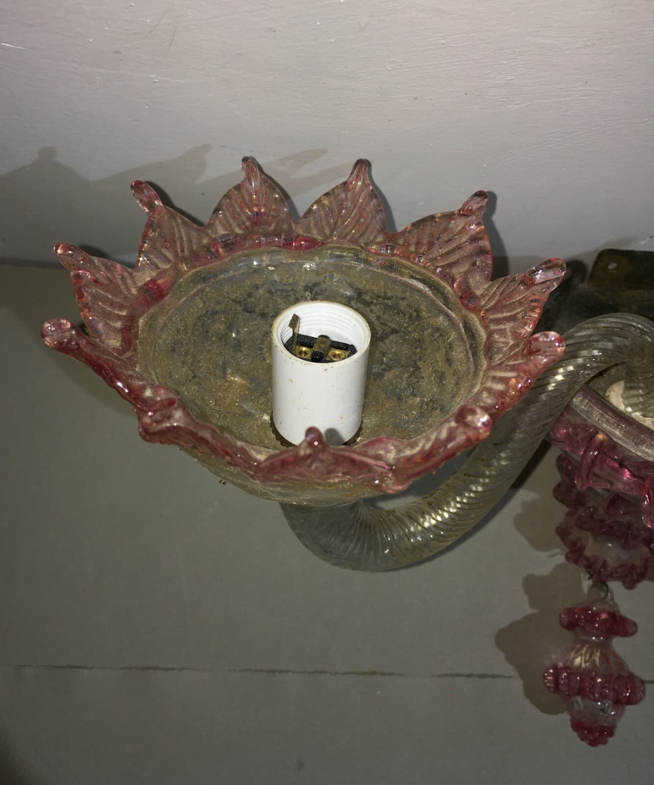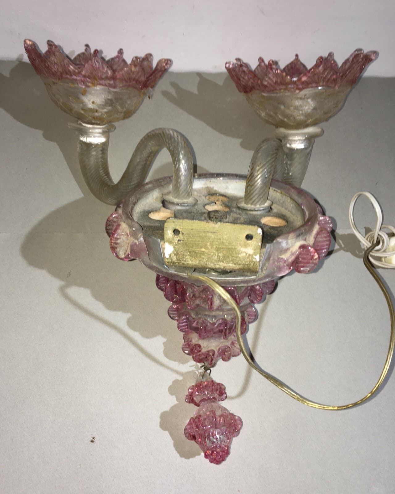 Lampada Da Parete In Vetro Rosato Mazzega, Murano