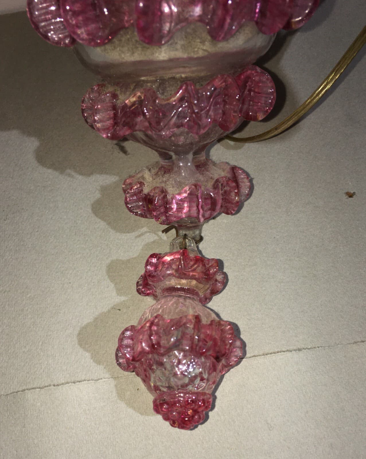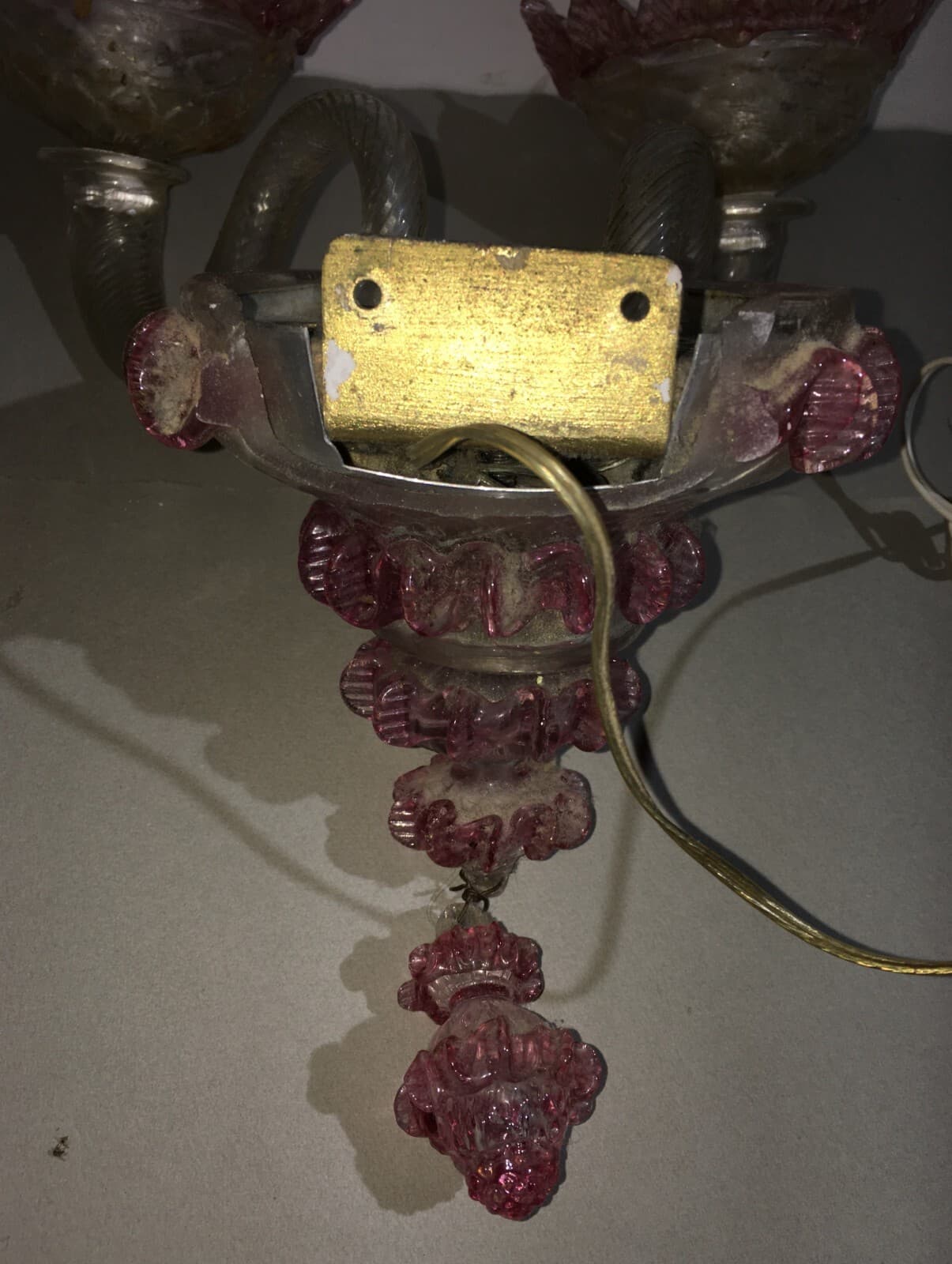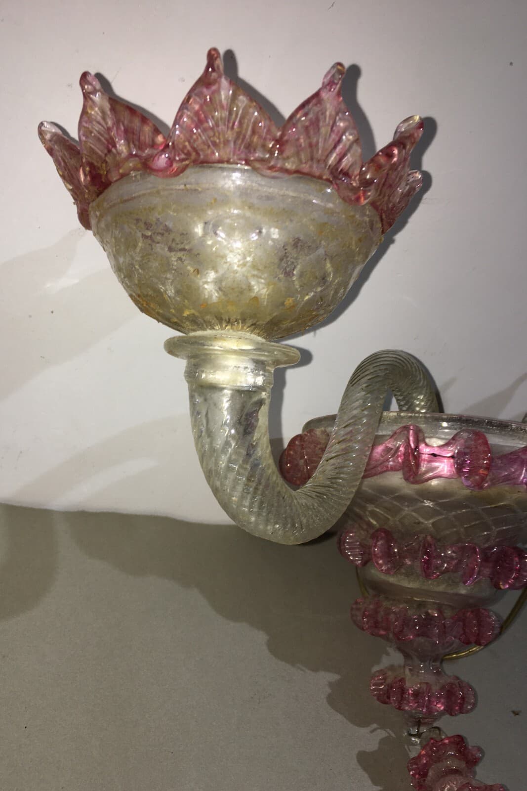 Lampada Da Parete In Vetro Rosato Mazzega, Murano