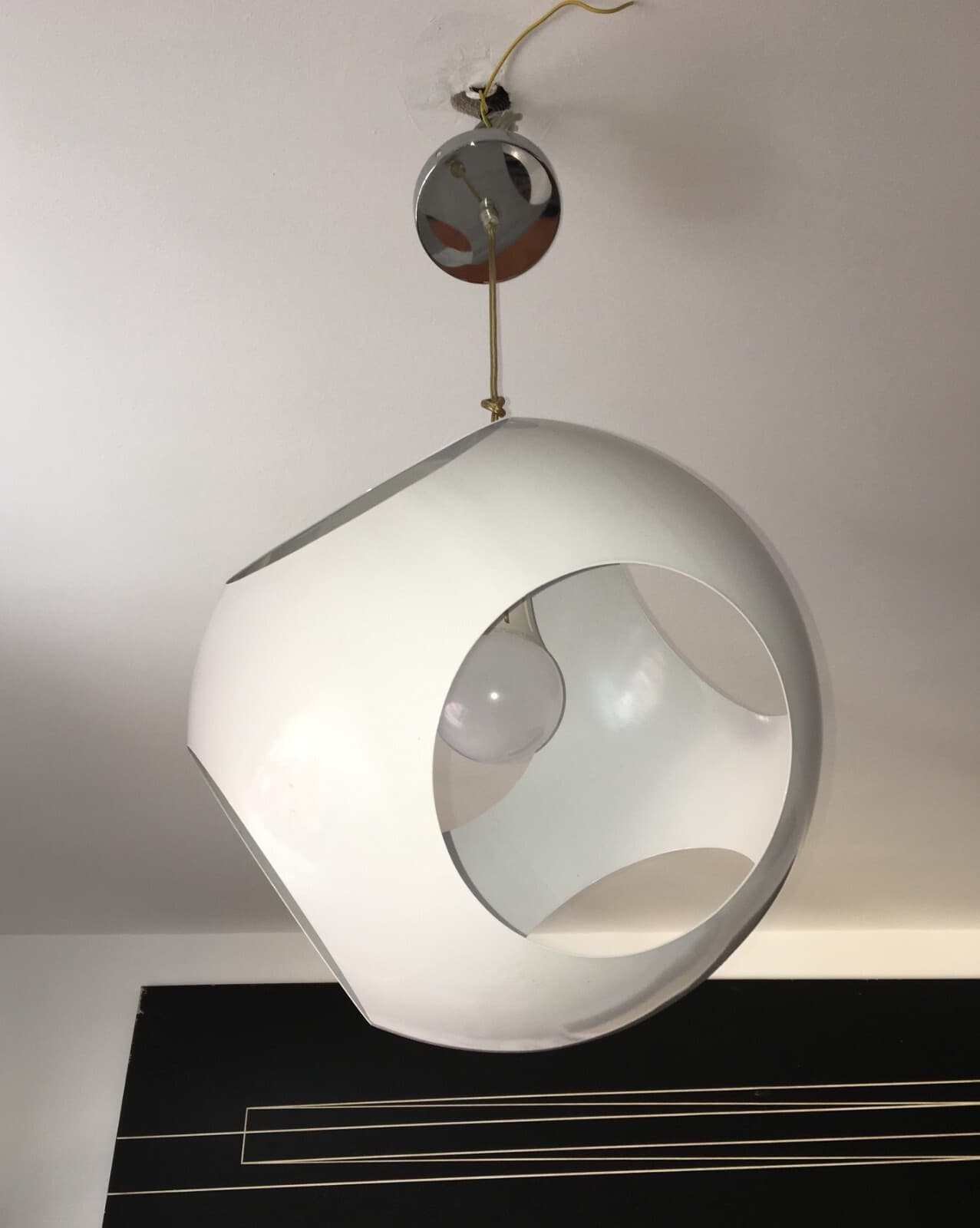 Lampada A Sospensione Sferica Space Age In Metallo Laccato