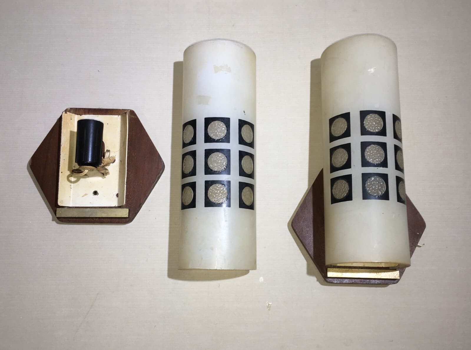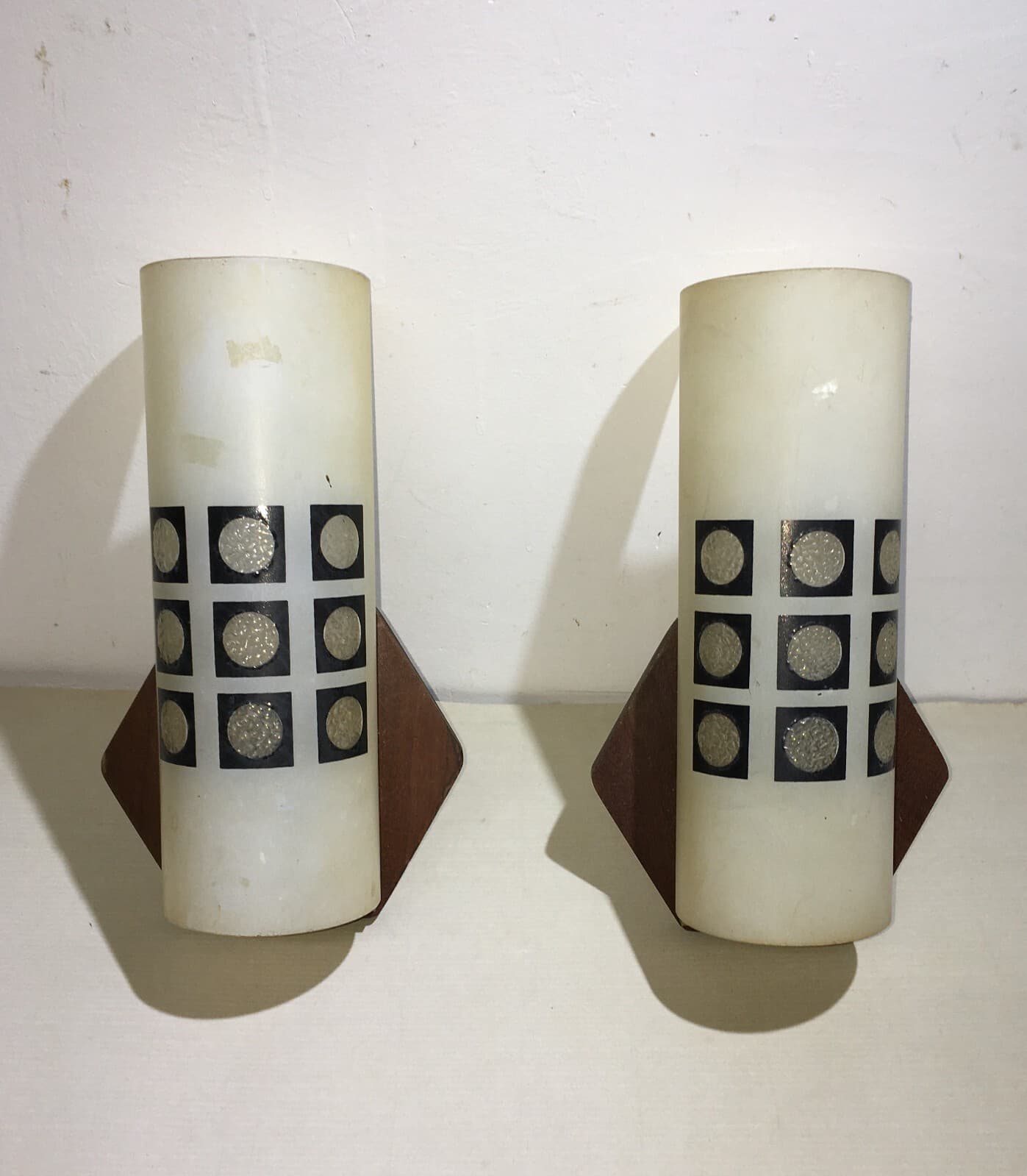 Coppia Di Appliques In Vetro E Legno, Era Gio Ponti