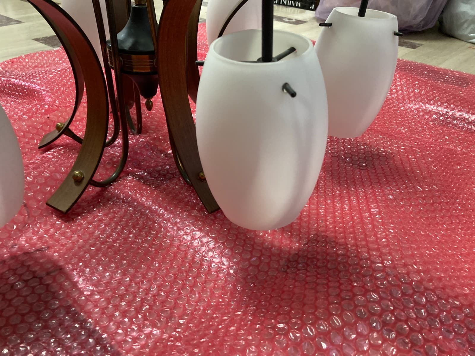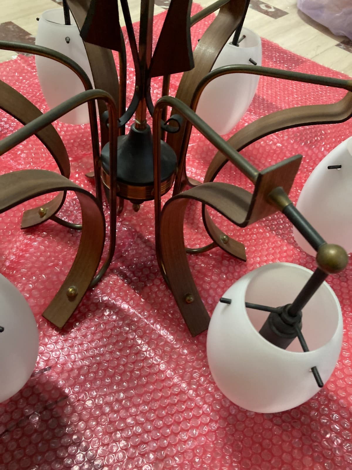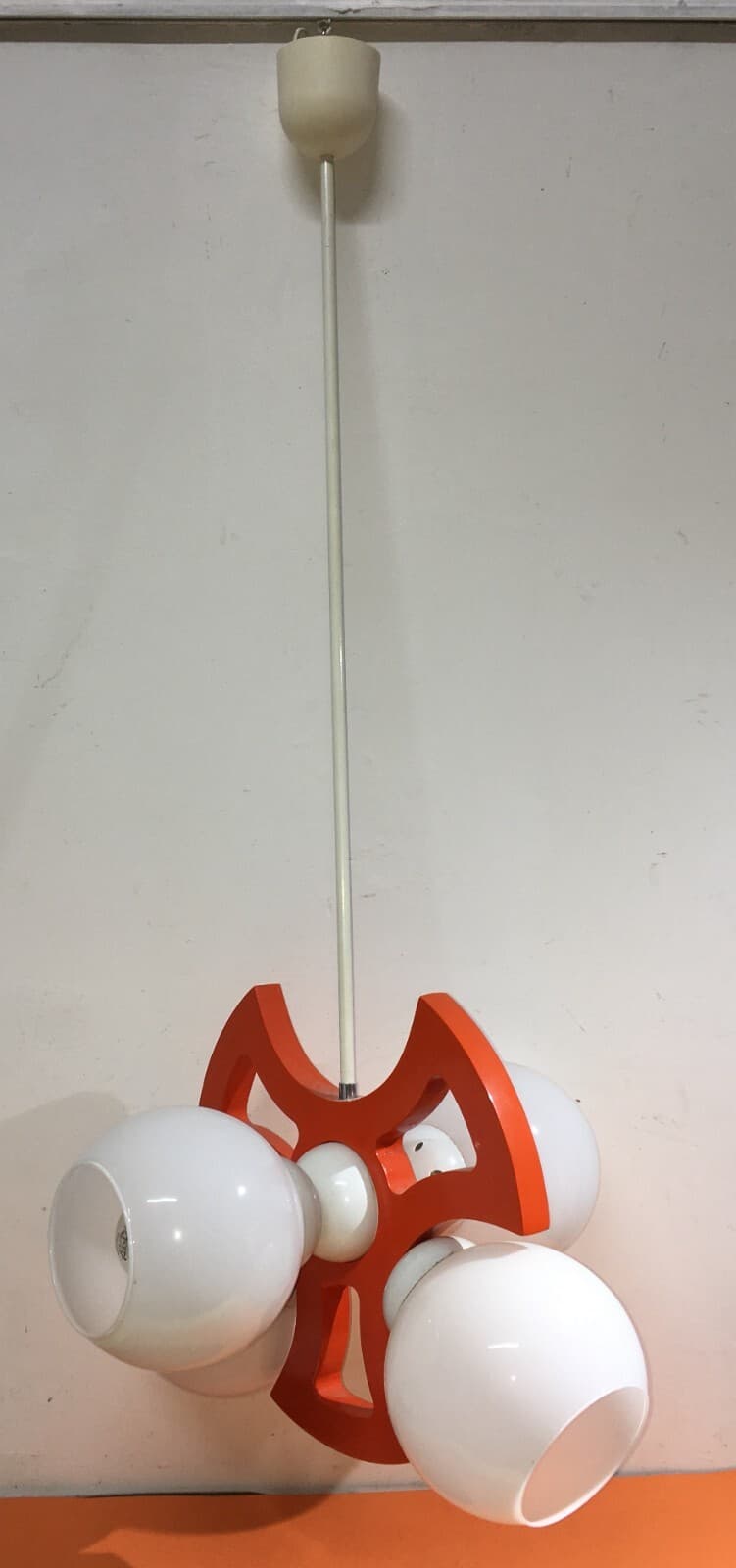 Lampadario Anni '70 In Legno Laccato Aragosta E Vetro