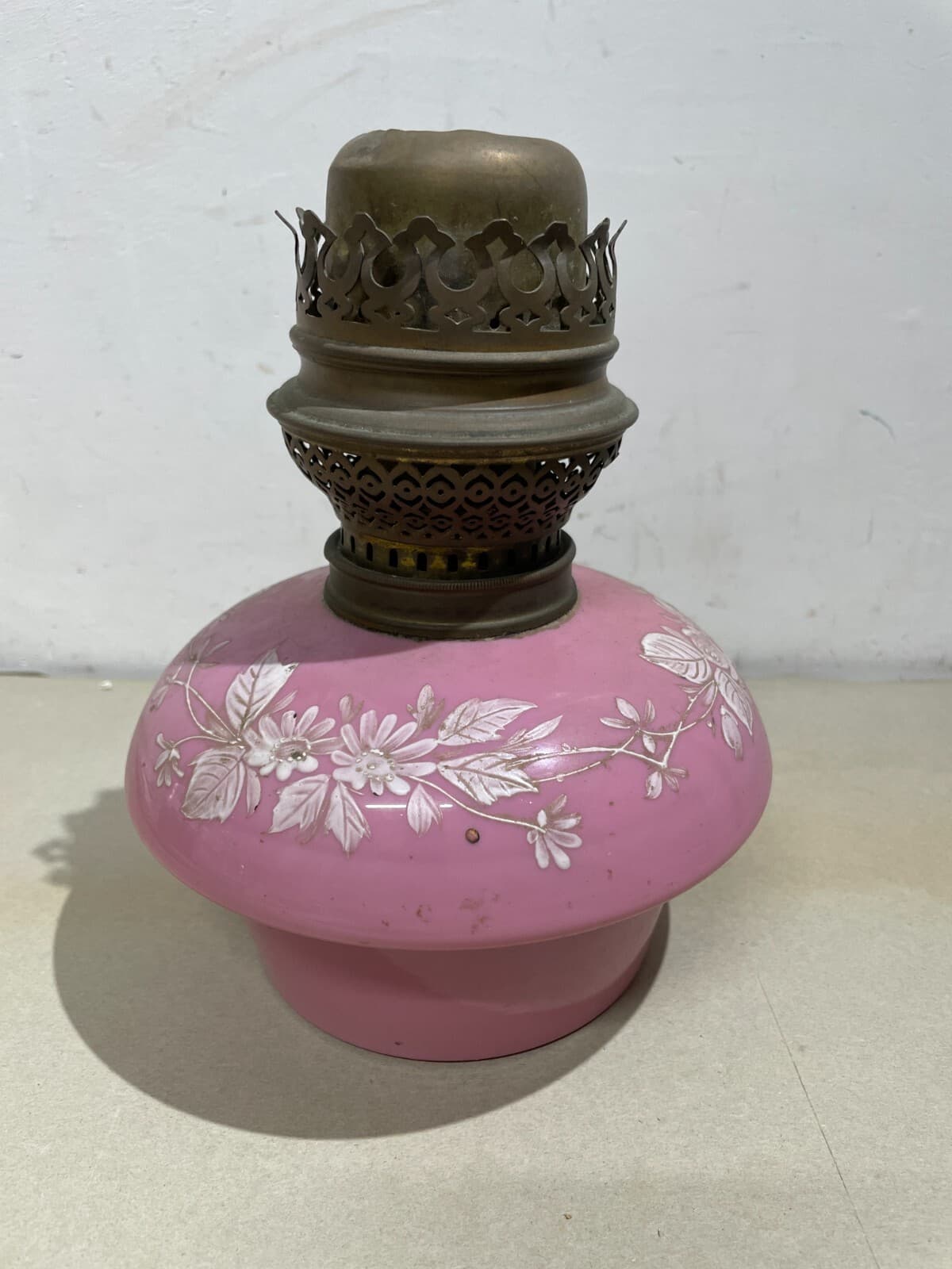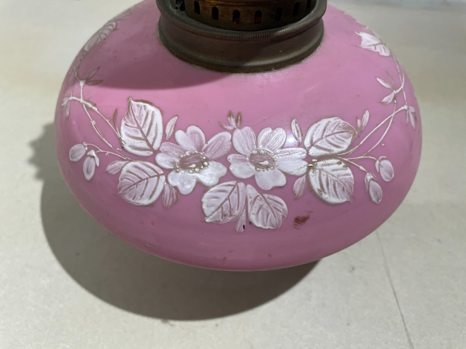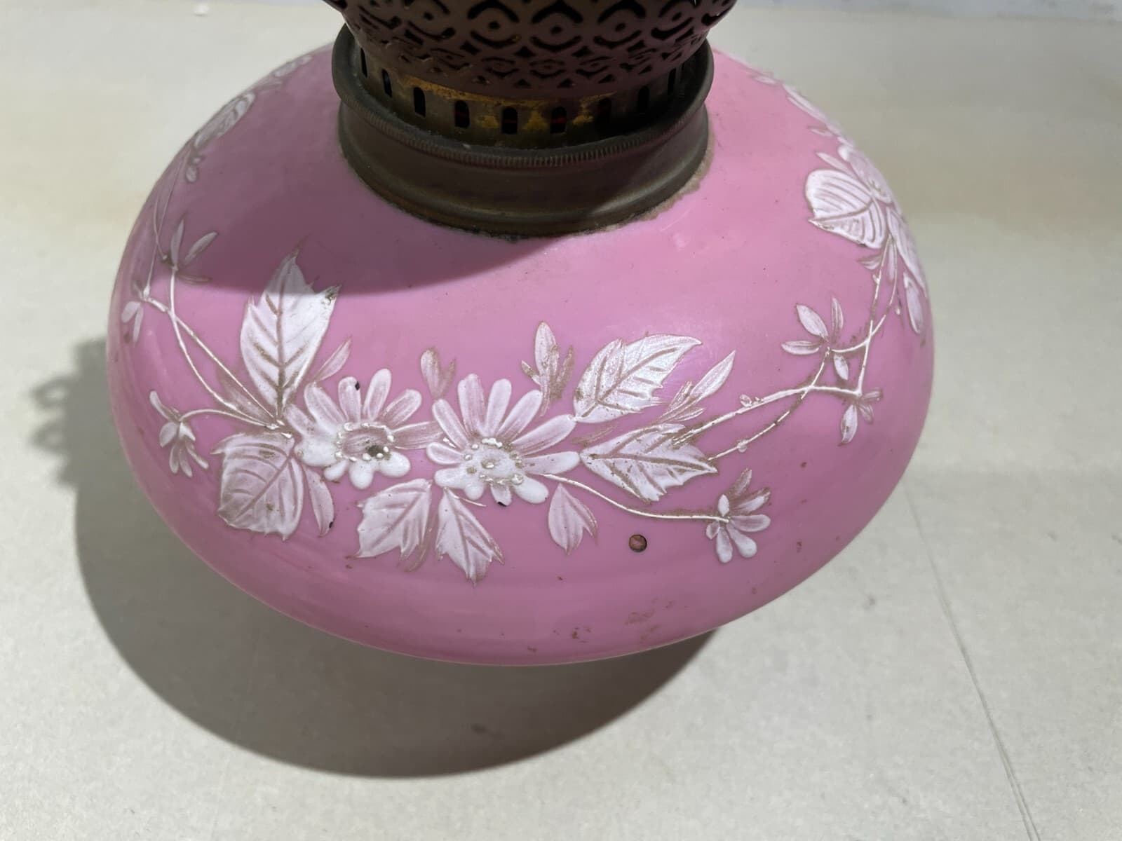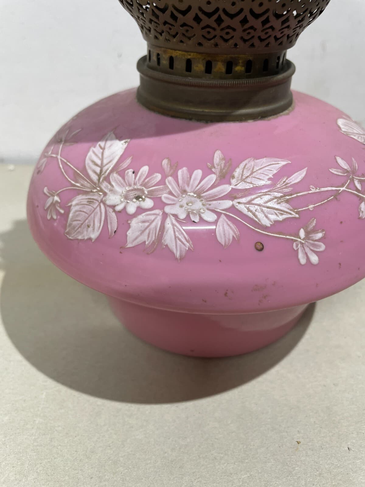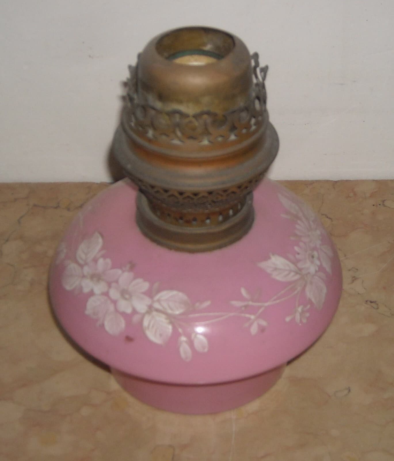 Antica Lampada In Vetro Opaline Rosa Con Decoro Floreale, Stile Liberty