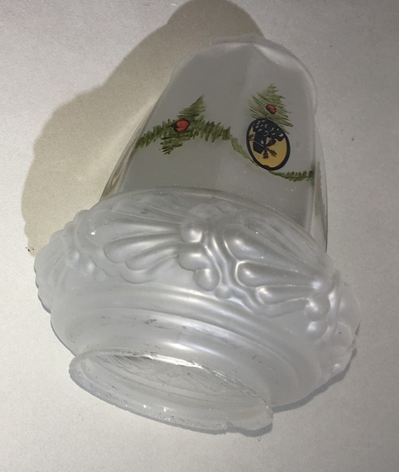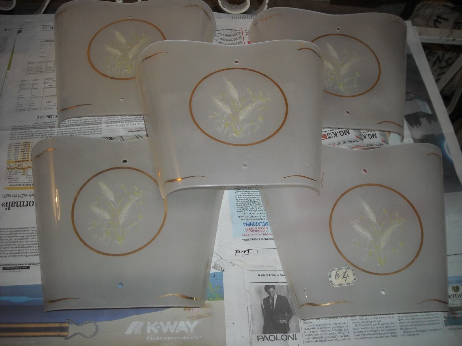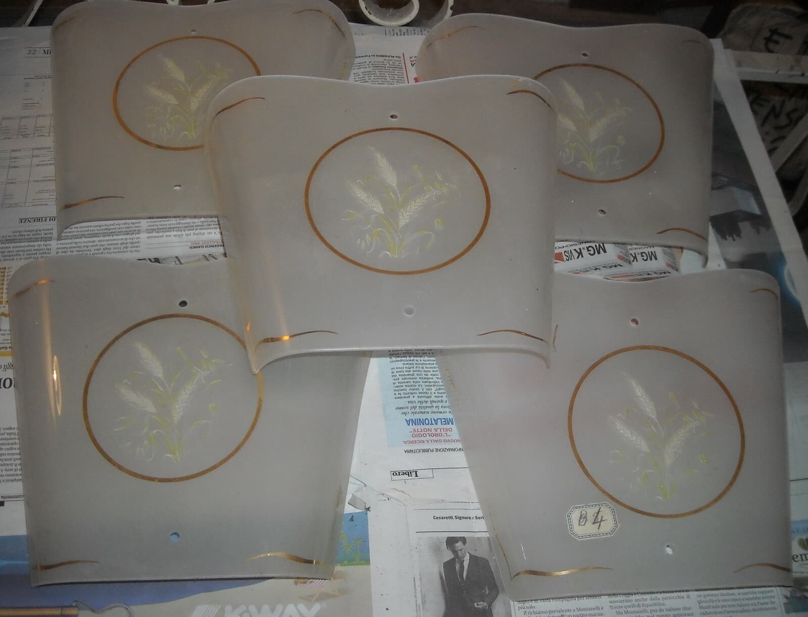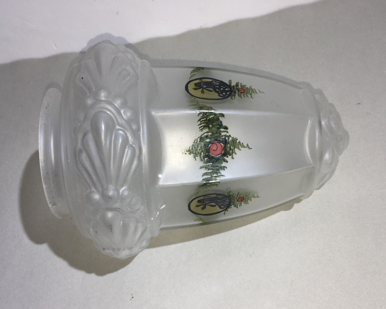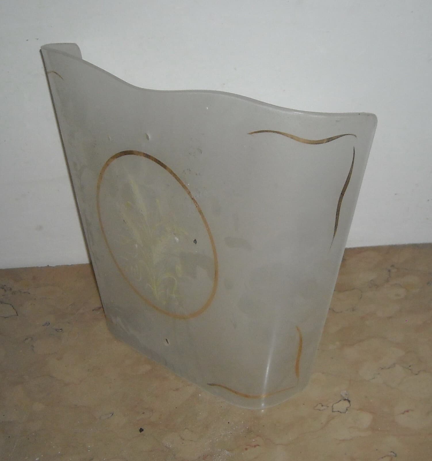 Modernariato Design: Coppa Per Lampada In Vetro d'Epoca Con Decoro Floreale