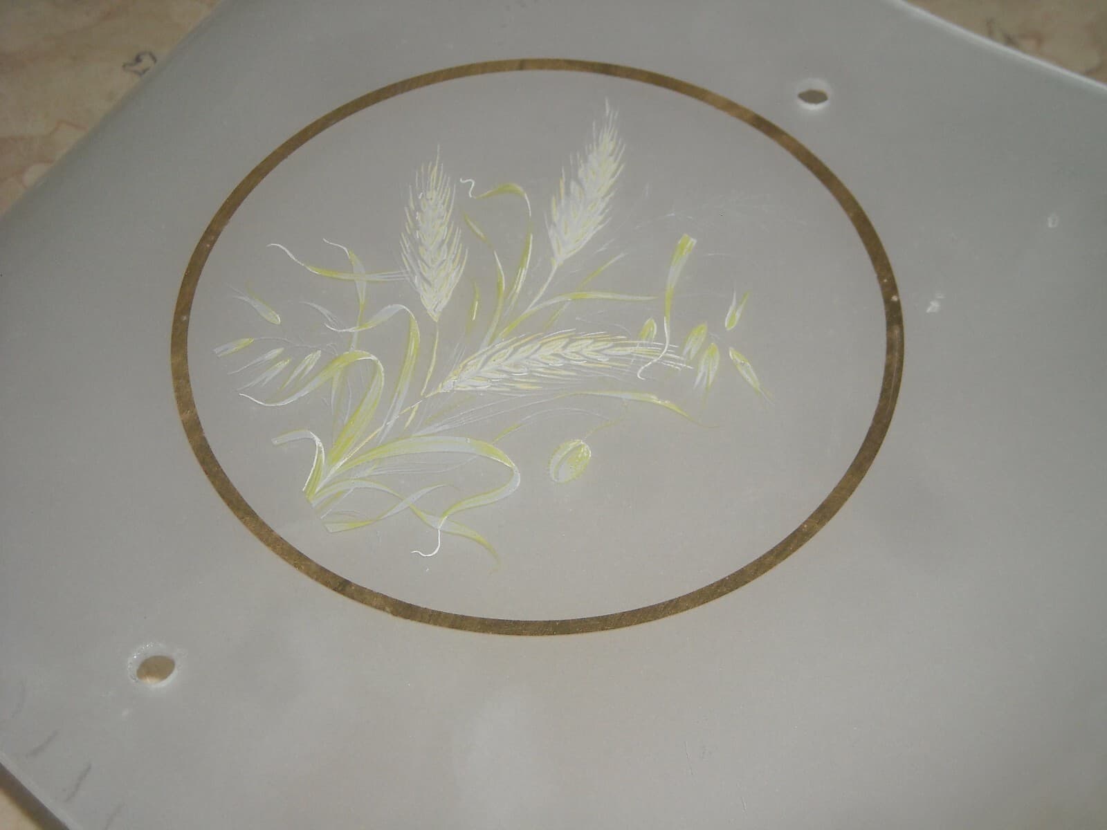 Vetro Piatto Decorato Per Lampada Con Motivi Floreali
