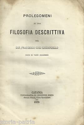 Francesco Coco Licciardello, Prolegomeni Di Una Filosofia Descrittiva, Catania, 1876