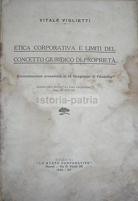 Vitale Viglietti Etica Corporativa E Limiti Del Concetto Giuridico Di Proprietà, Napoli 1934