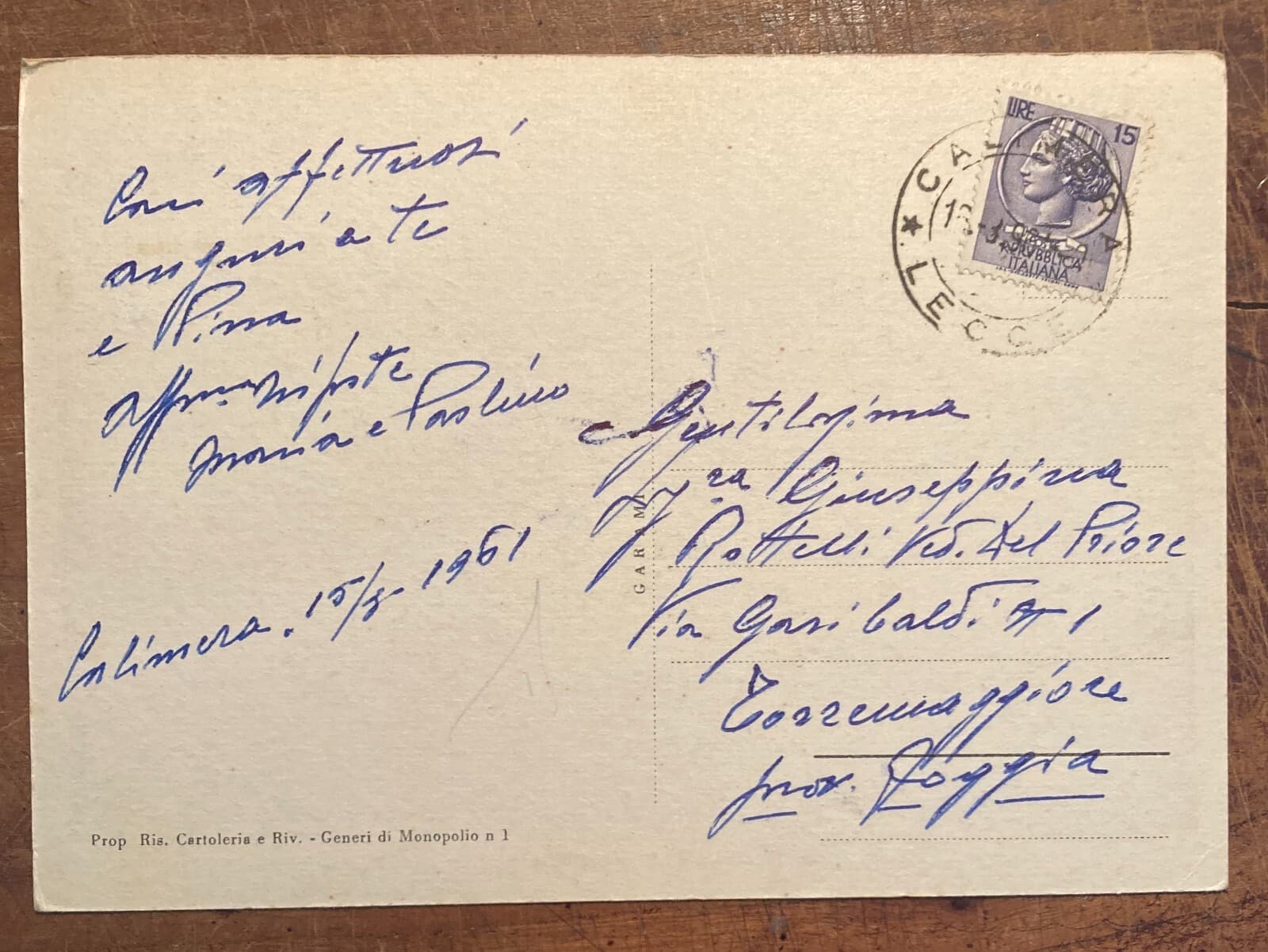 Antico Biglietto Da Visita Puglia, Salento, Lecce Luigi Diaferia