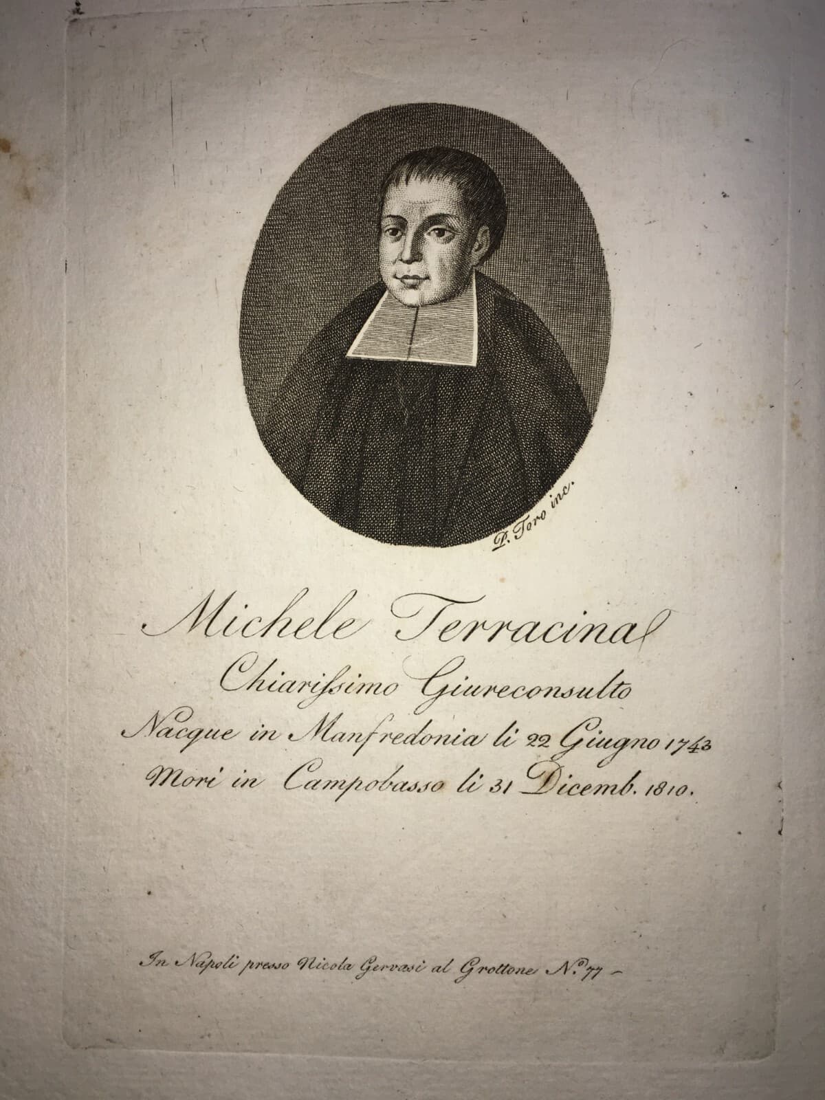 Puglia, Molise, Giuridica: Ritratto Di Giureconsulto Michele Terracina, Antica Incisione