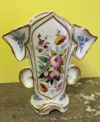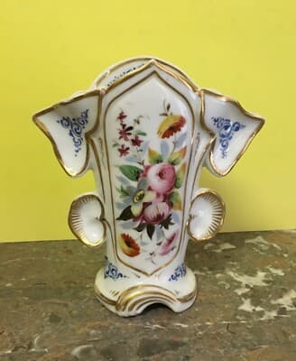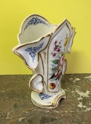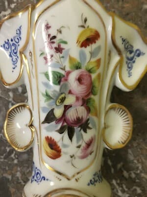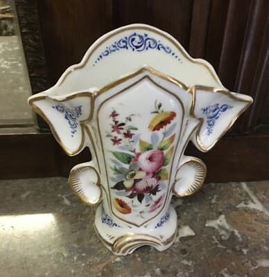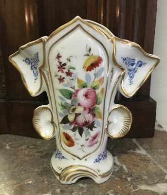 Vaso Portafiori In Porcellana Fiorata E Dorata, Fine XIX Secolo
