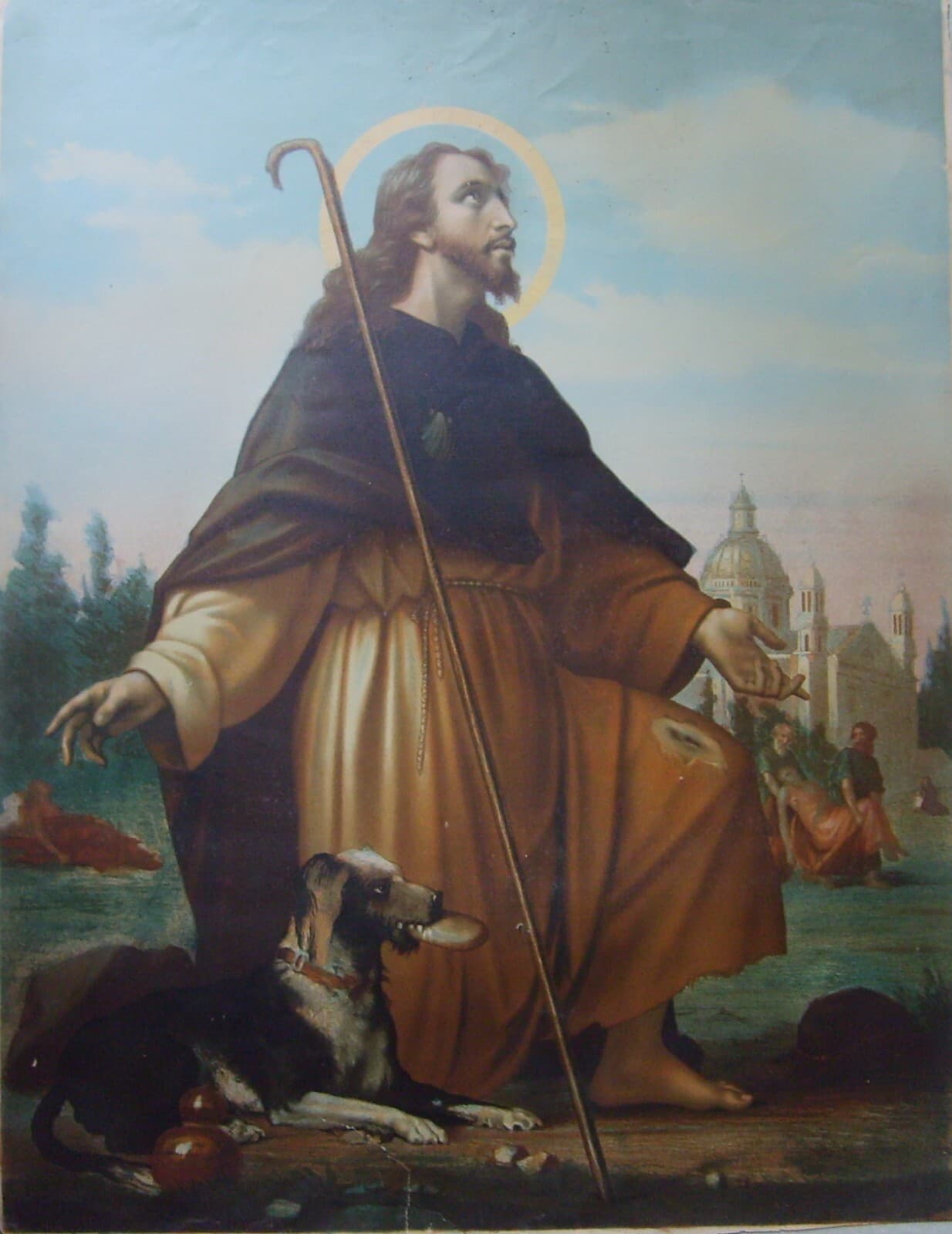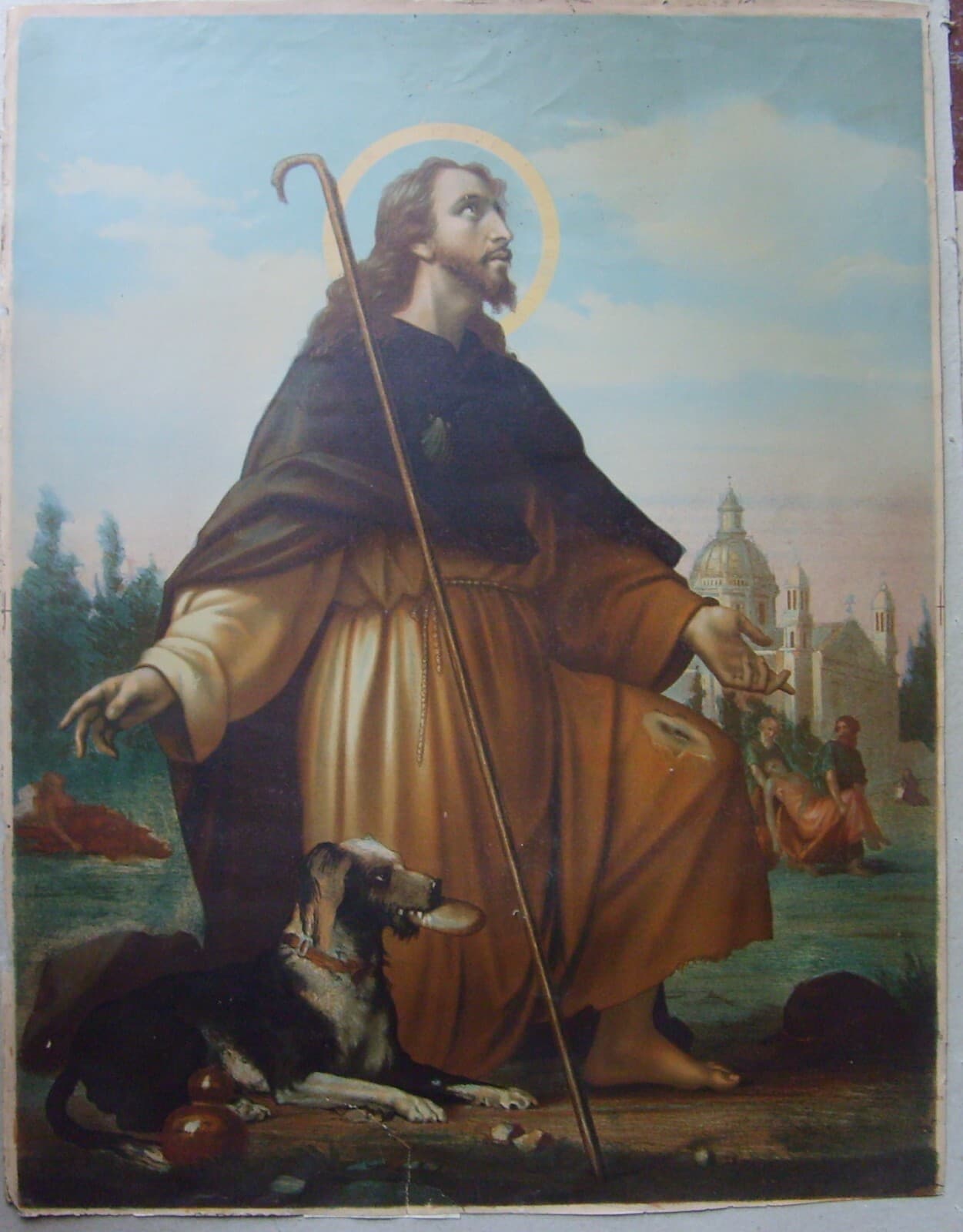 Arte Popolare Devozionale: Grande Stampa A Colori Di San Rocco E Il Cane