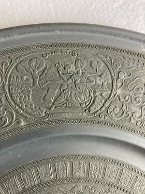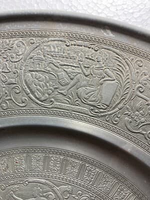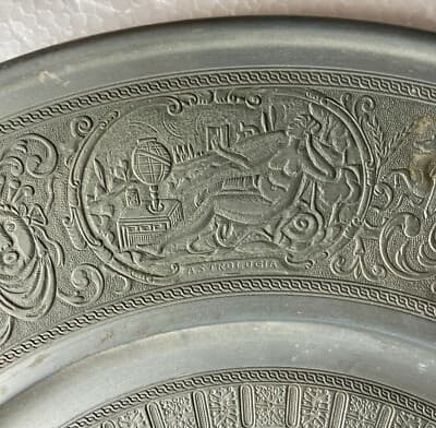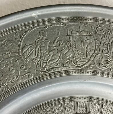 Piatto Decorativo Allegorico In Peltro Berendsohn Temperanza E Arti Liberali