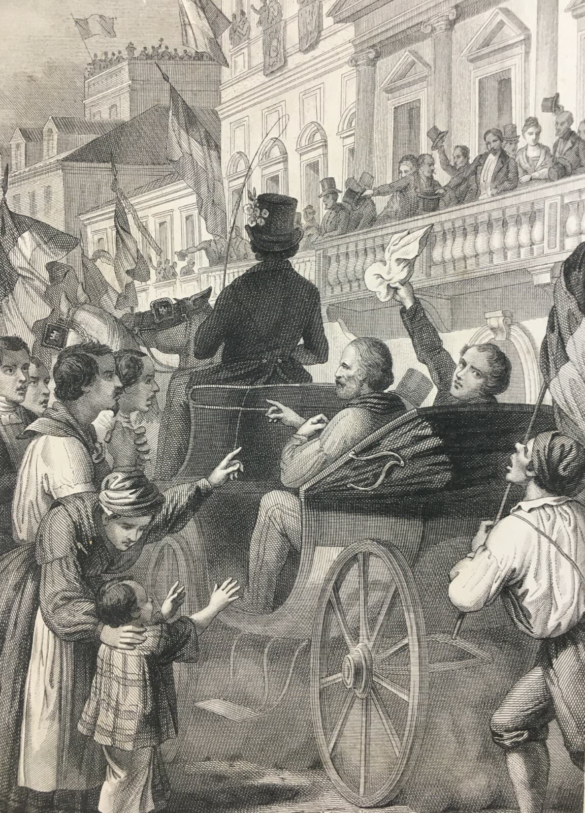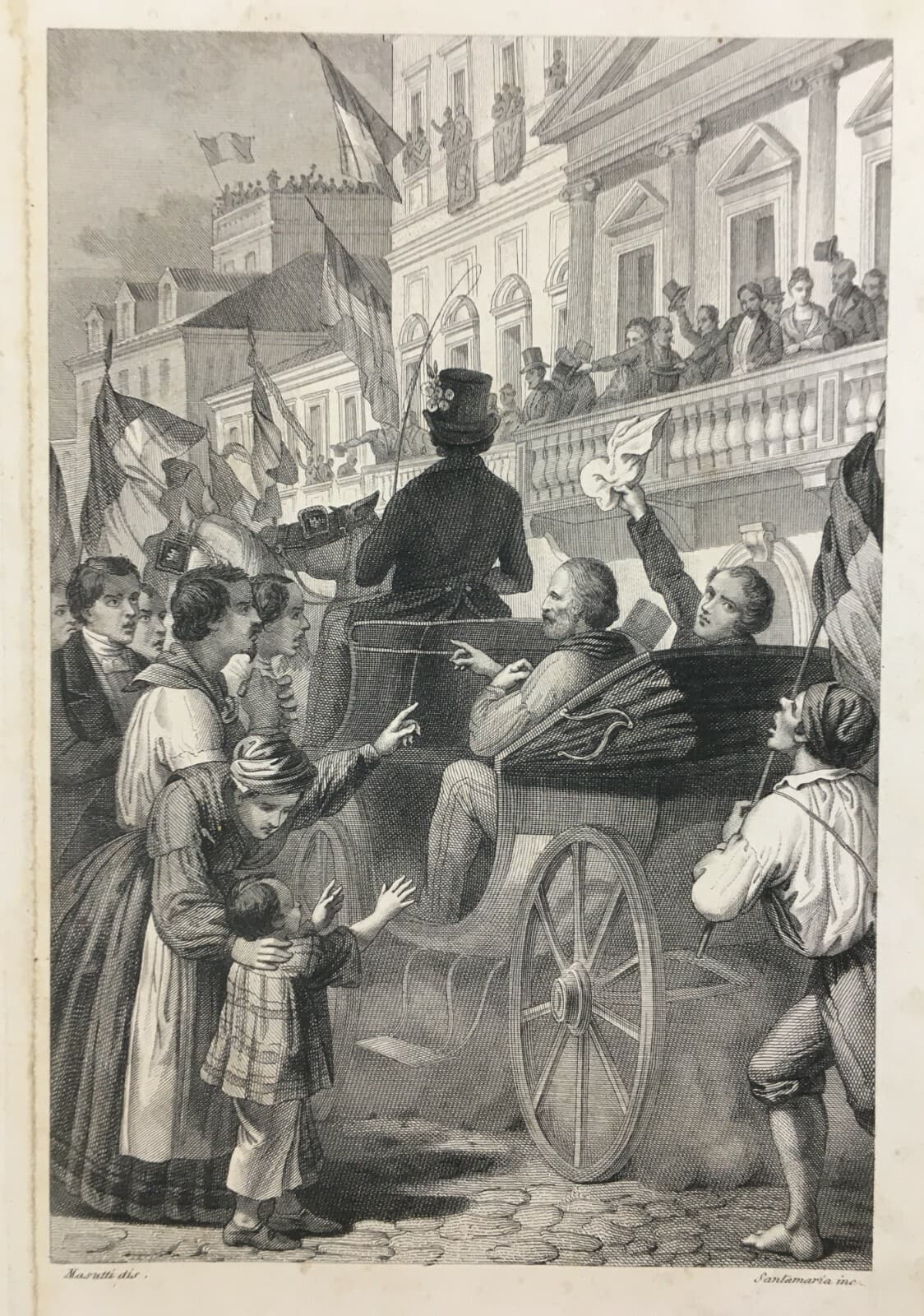 Napoli, Garibaldi: Festosa Accoglienza, Animata Veduta Dell'Ottocento Con Bandiere, Masutti