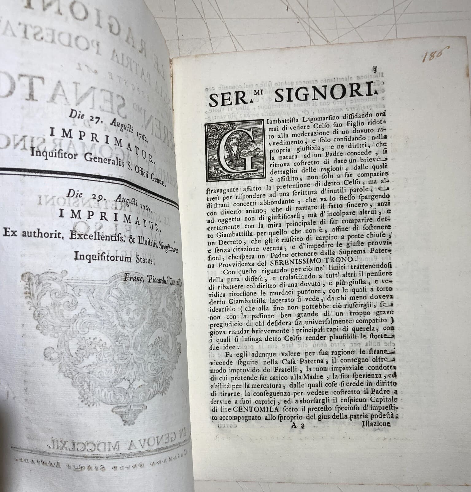 Liguria, Genova: Giuridica, Notariato, Eredità Stefano Noceti, Avvocato Palma 1739