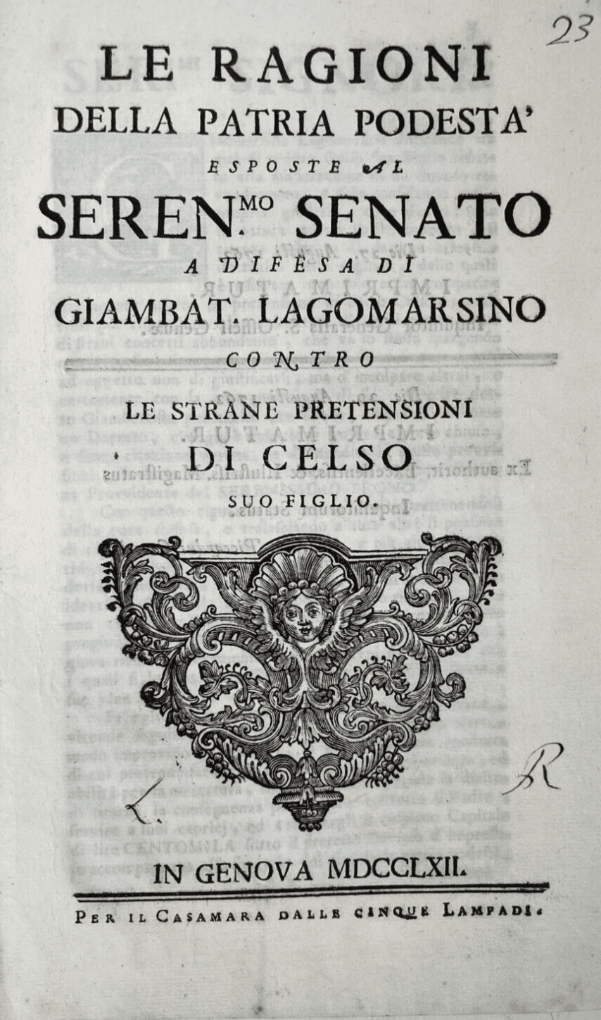 Le Ragioni Della Patria Potestà: Giambattista Lagomarsino Contro Celso Lagomarsino (Genova, 1762)