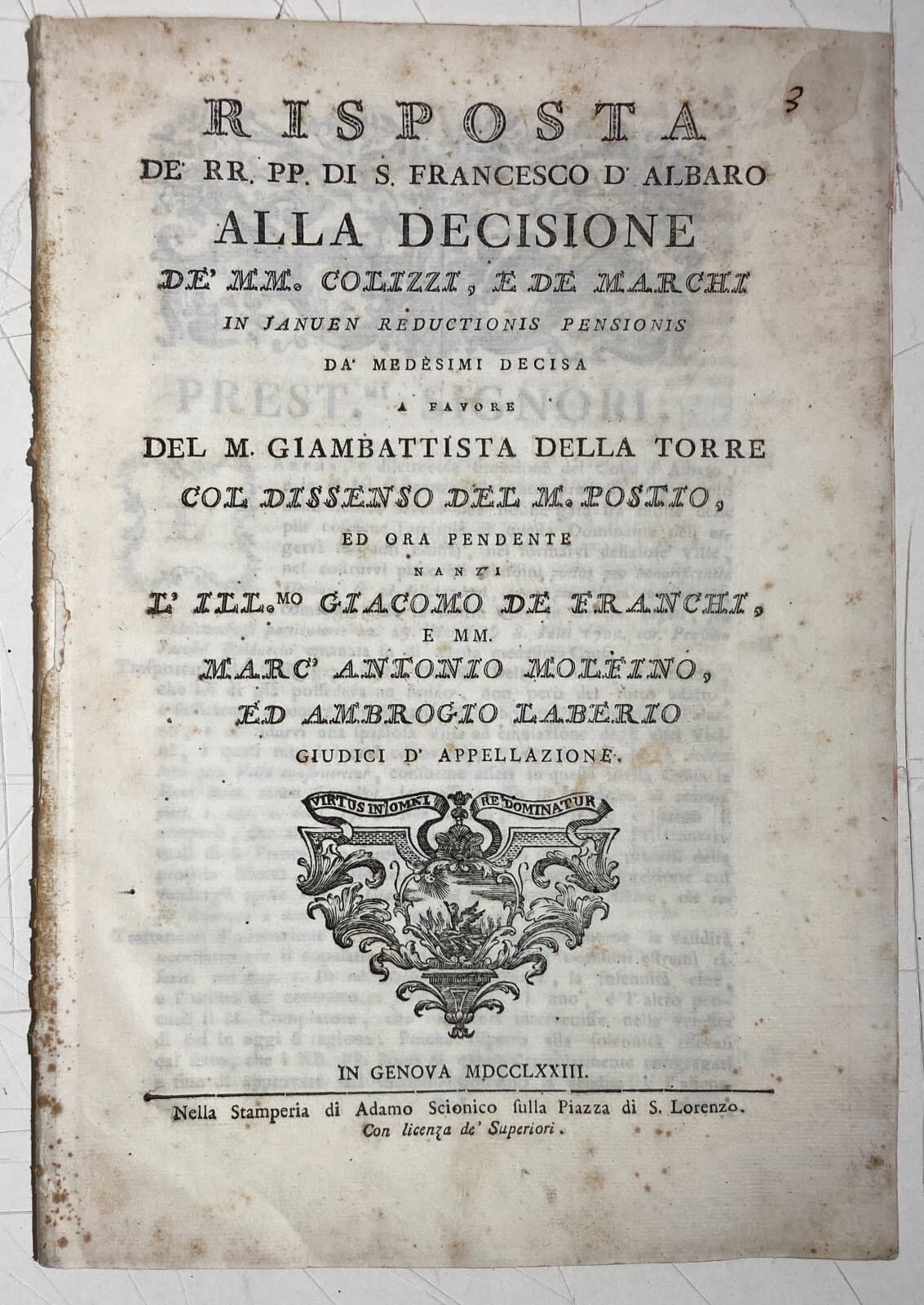 Liguria, Genova: Antica Allegazione Giuridica Pallavicino, Queirolo, Boggiano, Viale