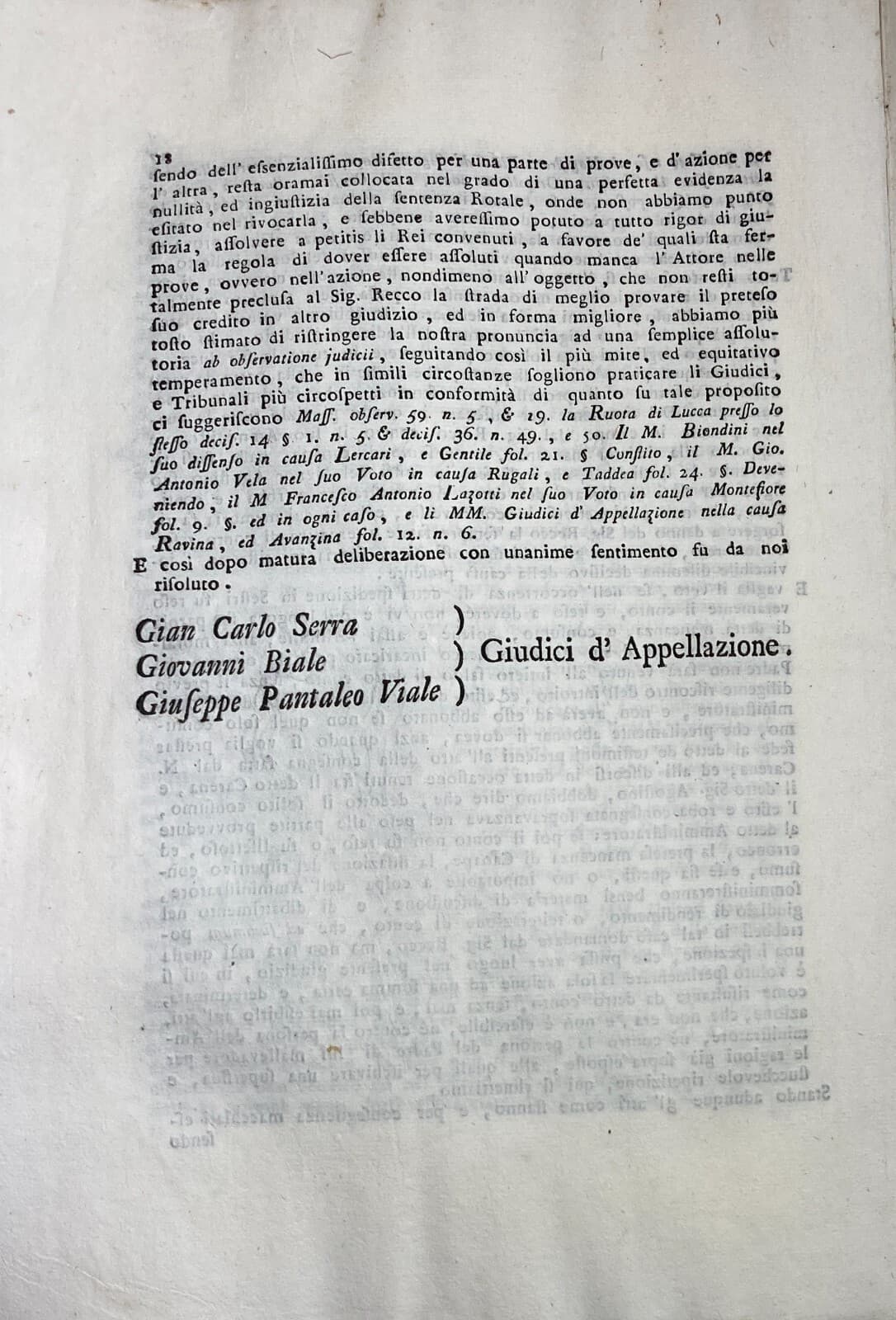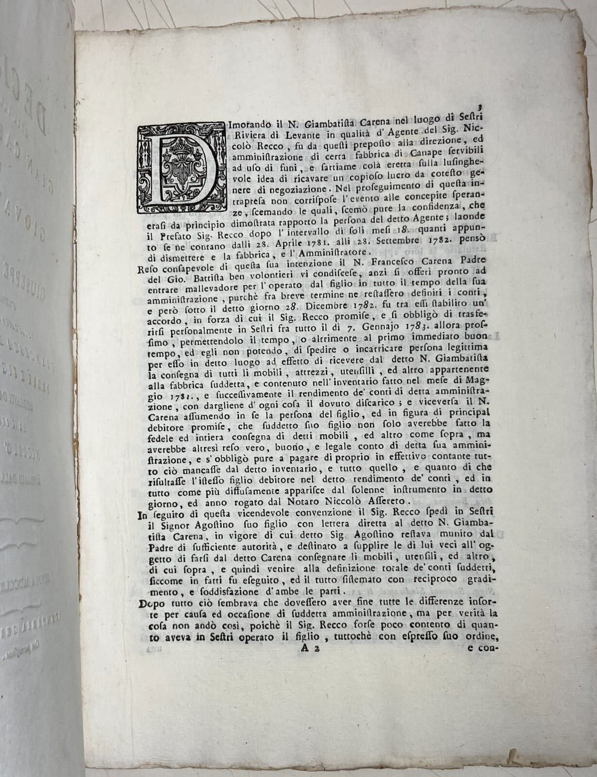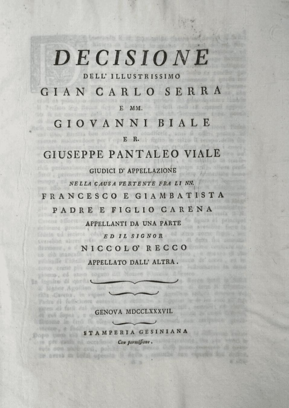 Liguria, Genova, Sestri Levante: Decisione Giuridica Carena Recco, 1787