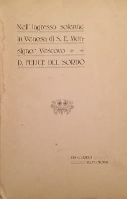Basilicata: Venosa, Melfi, Nusco. Ingresso Solenne Del Vescovo Felice Del Sordo, 1908