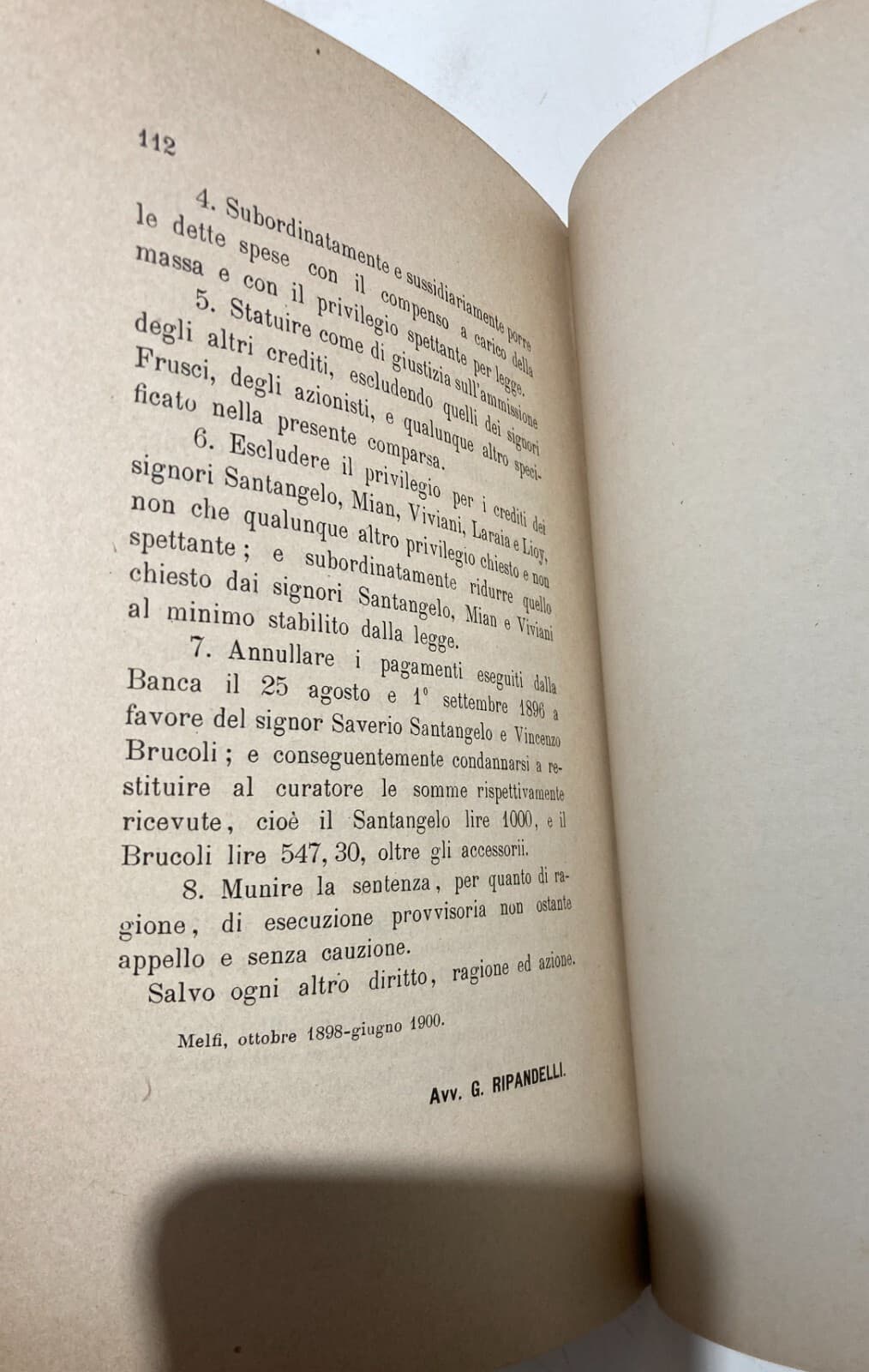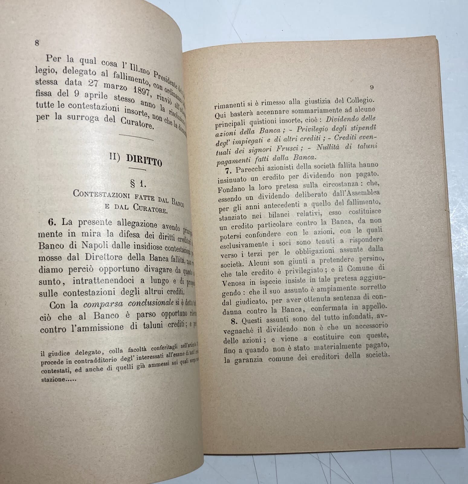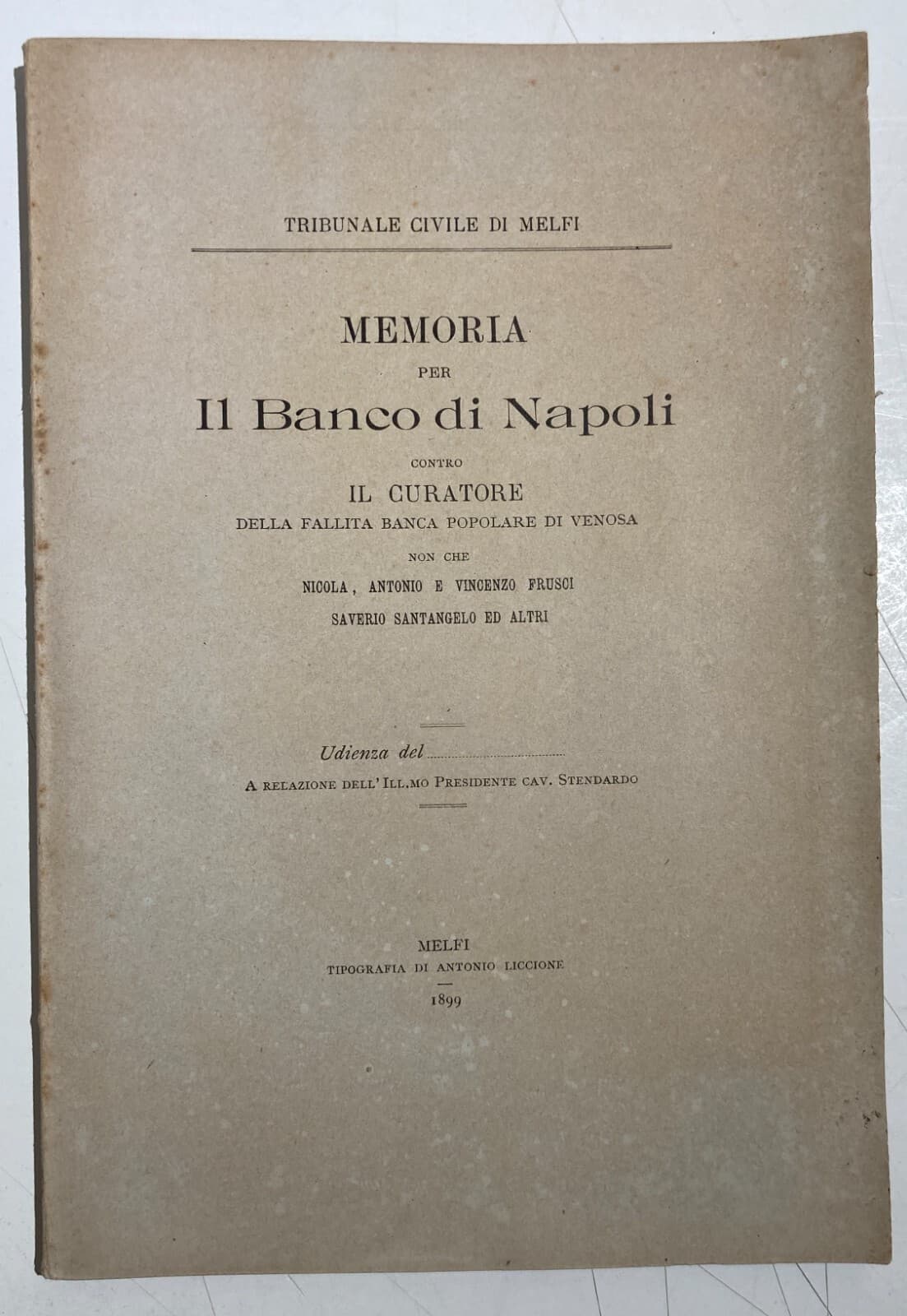 Basilicata, Melfi, Rionero: Banche, Giuridica, Antica Allegazione, 1893, Banco Di Napoli